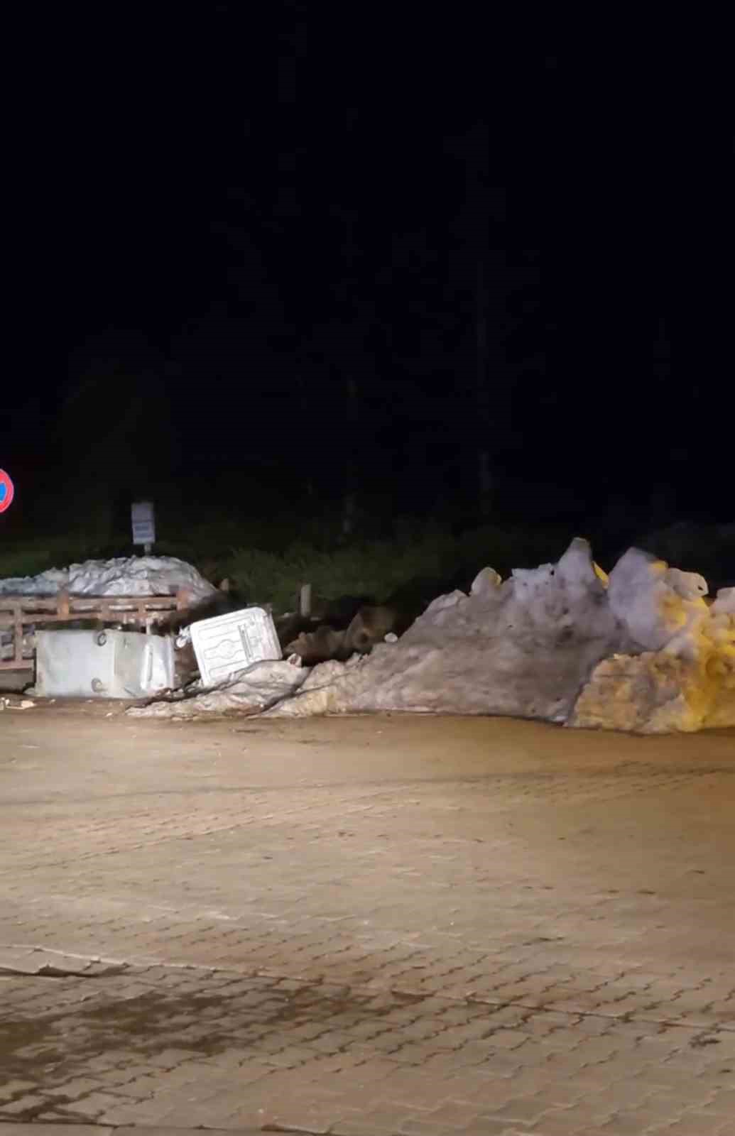 Uludağ’da aç kalan ayılar, çöp konteynerlerinde yemek ararken tatilciler durumu şaşırarak izledi.