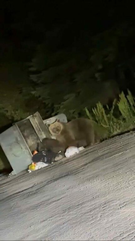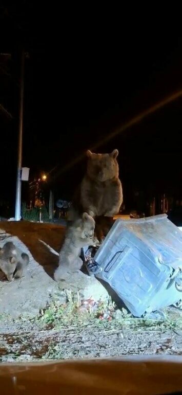 Türkiye’nin önemli turizm merkezlerinden biri olan Uludağ’da aç kalan ayı ailesi, çöp konteynerlerini karıştırarak yiyecek aradı.