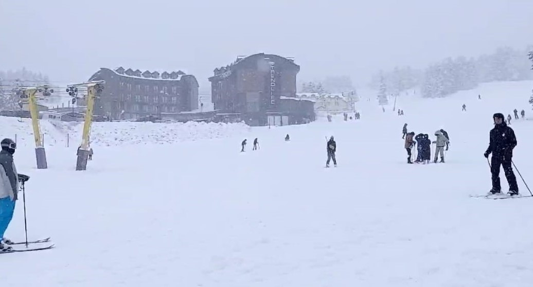 Kar yağışı olmadığı için sezonun sönük başladığı Uludağ’da beklenen kar geldi. Öğle saatlerinden itibaren aralıklarla düşen kar yağışı etkisini arttırıp pistleri doldurunca bir anda her yer kayak severler ile doldu.