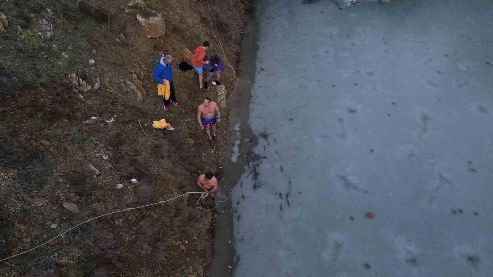 Göletten çıkan gençlerden Utku Korkmaz, “Çok nefes kesiciydi. İlk başta her yanın uyuşmaya başlıyor. Kendim istedim ve yaptım. Çok güzel bir deneyimdi” diye konuştu.