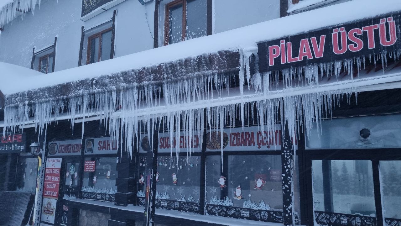 Binalardan sarkan buzların ise kısa sürede oluşması, havanın ne kadar soğuk olduğunu gözler önüne serdi.