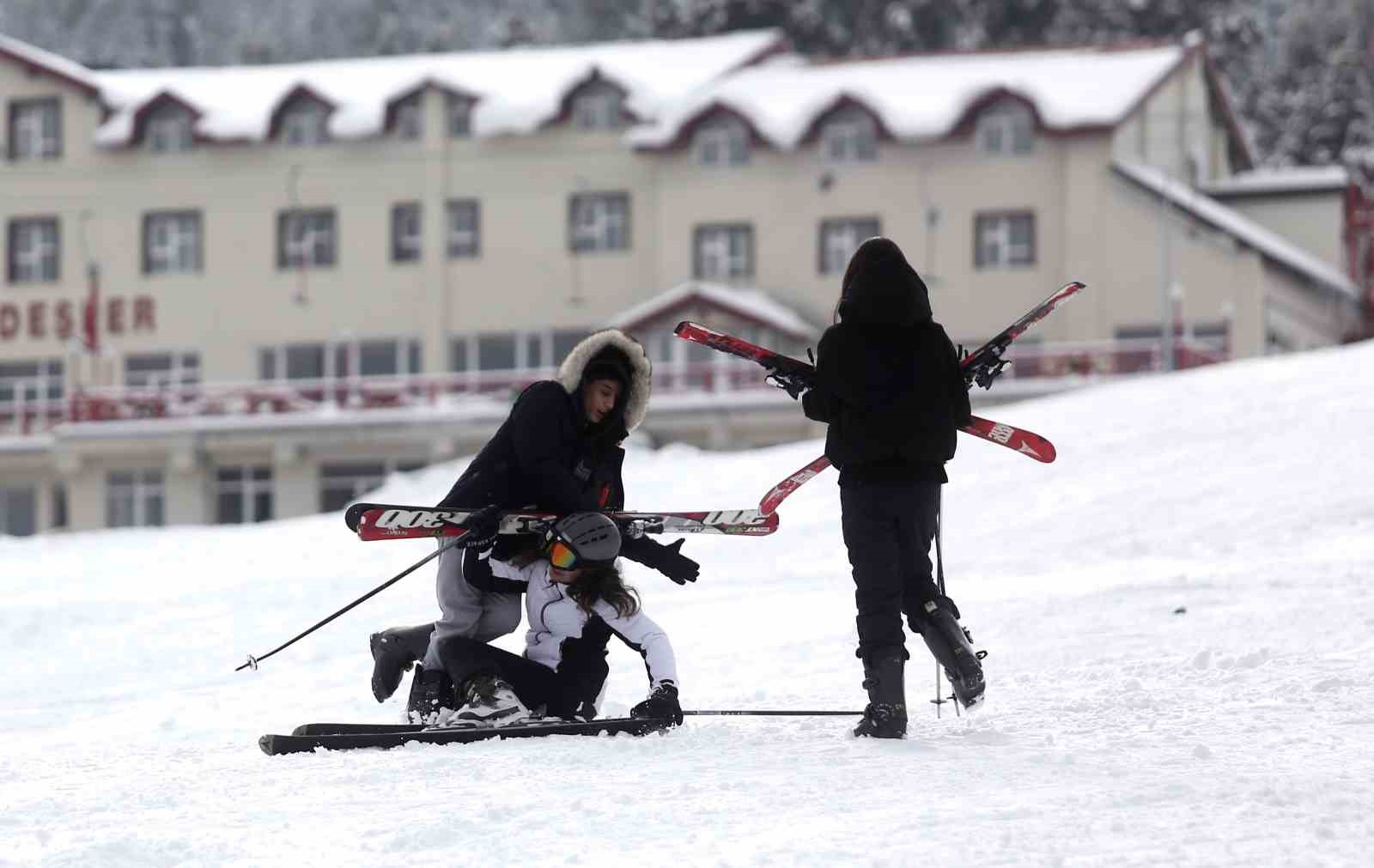 Kar ve kayak denildiğinde ilk akla gelen yerlerden olan Uludağ’da, geçtiğimiz gün yağan karla birlikte kayak sezonu resmen açıldı. 2023 yılının Kasım ayı ortasında ilk karın düştüğü Uludağ’da birkaç gün sonra yağan yağmur ve lodos karların erimesine sebep olmuştu. Yılbaşına da karsız giren Uludağ’da nihayet geçtiğimiz hafta beklenen kar geldi ve kayak sezonu resmen açılmış oldu. Karla birlikte otellerin rezervasyonların da hareketlilik başlarken, Bursa, İstanbul, Balıkesir ve İzmir gibi şehirlerden günübirlikçiler de Uludağ’ın yolunu tuttu. Kayak yapmayı bilenler telesiyeji ile zirveye doğru tırmanarak aşağı doğru rüzgar gibi kaydı. Bazı acemi kayakçılarında düşmesi, kameraya yansıdı. Kayak bilmeyenler ise kızaklarla ve poşetlerle karın tadını çıkardı. Çevre şehirlerden turlarla gelen öğrenciler de Uludağ’a hareket kattı. Uludağ’a yerli olduğu kadar yabancı turistlerin de ilgi gösterdiği gözlemlendi.