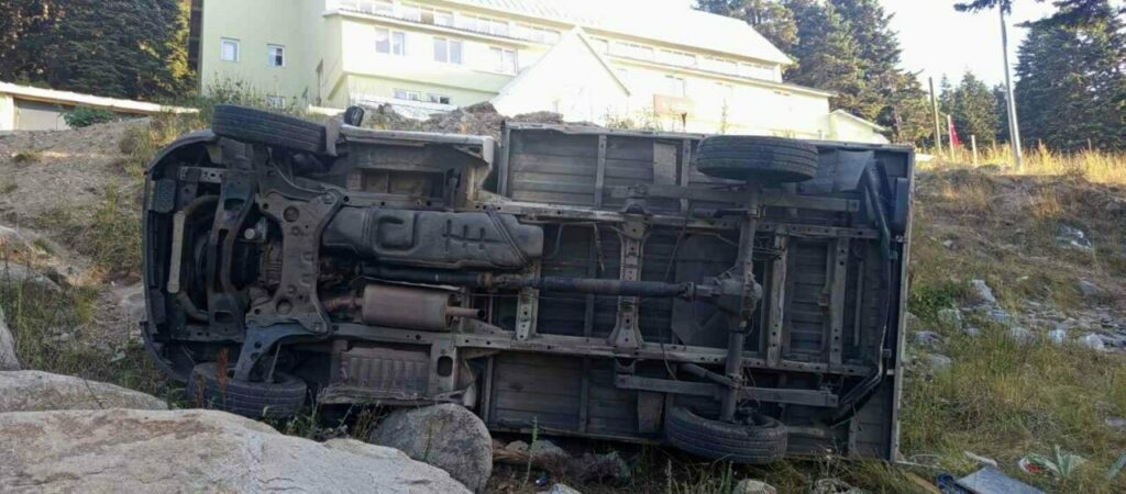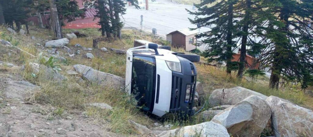 Bursa, Uludağ oteller bölgesinde virajı alamayan sürücü kamyonetini şarampolde buldu. Kendi imkanlarıyla çıkaramayacağını anladığında yardım çağırdı. Olay yerine gelen vinç ve kurtarma ekipleri kamyoneti şarampolden çıkardı.