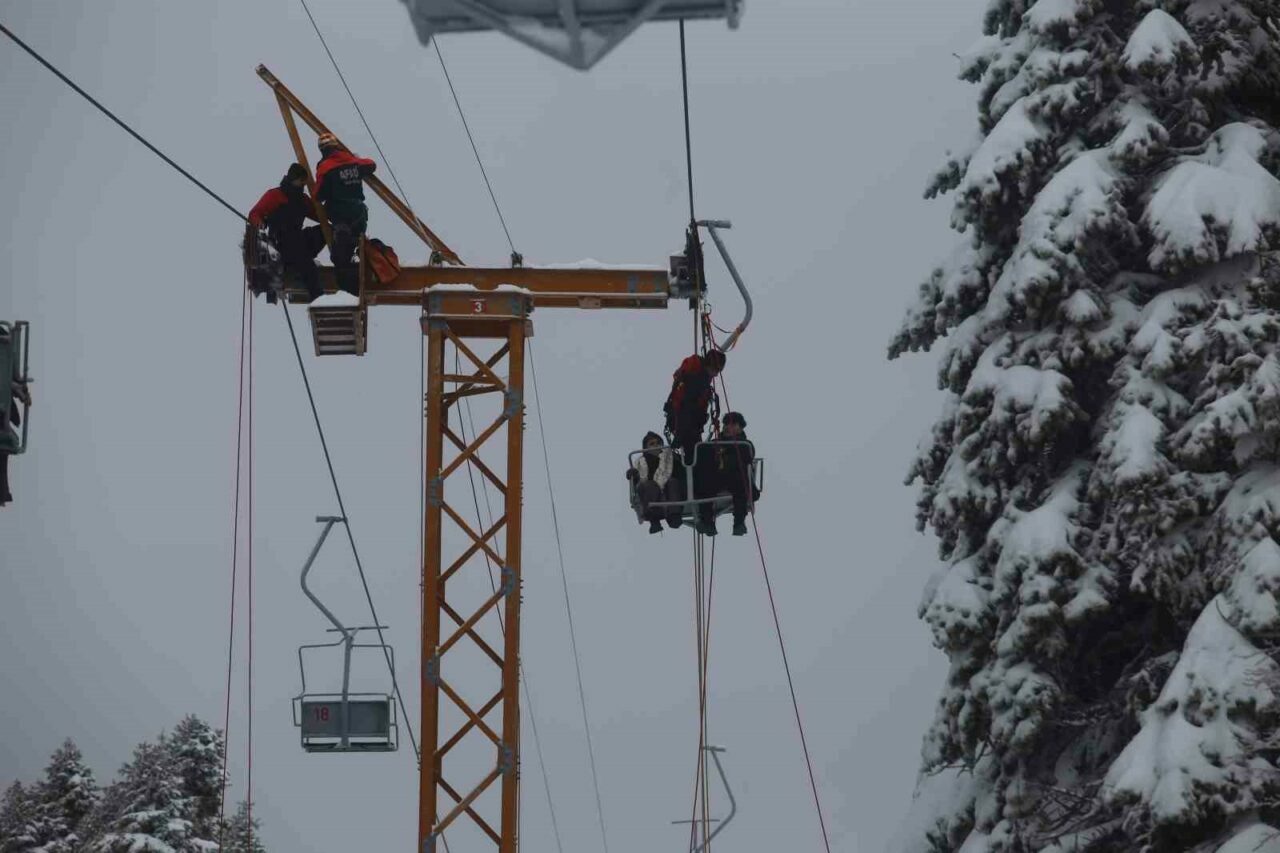 Kış turizminin merkezi Uludağ’daki Birinci Oteller Bölgesi’nde faaliyet gösteren Fahri Otel telesiyejinde meydana gelen teknik arıza nedeniyle tellerde mahsur kalan tatilcilerin tamamı kurtarıldı.