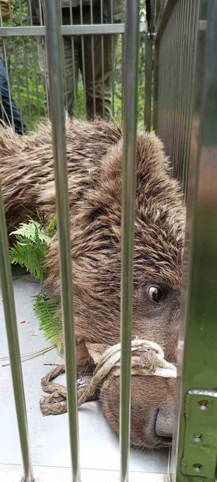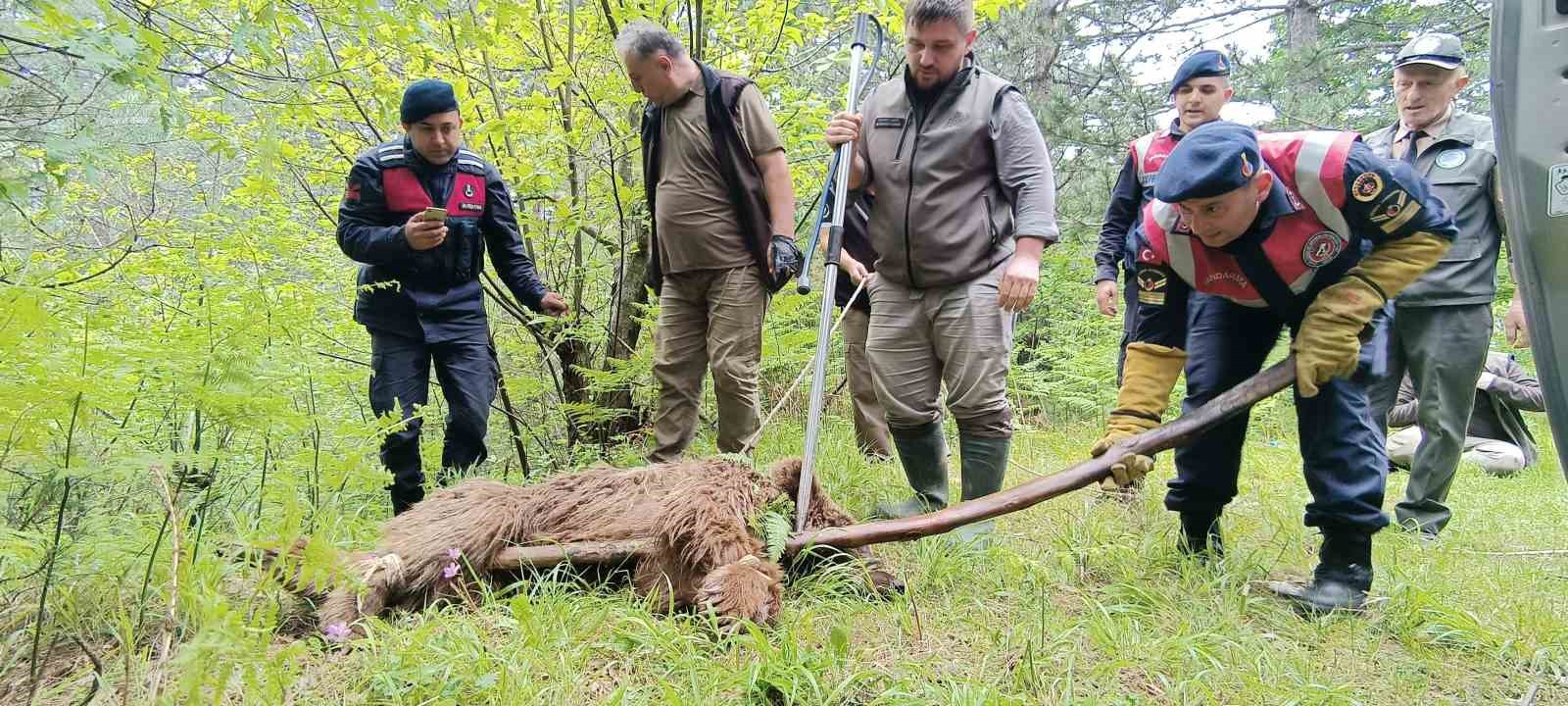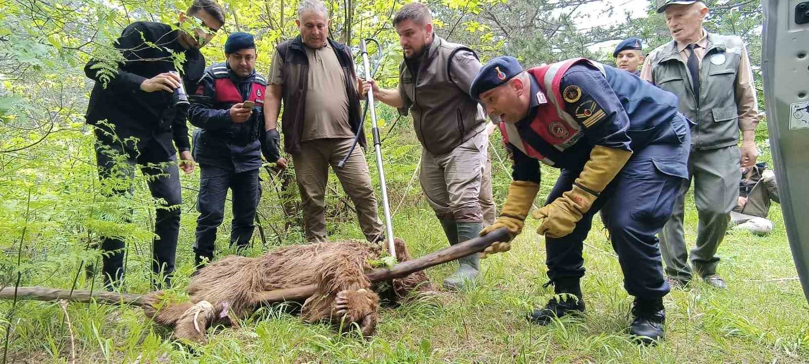 Sabahın ilk ışıklarıyla ayının izini sürmeye devam eden ekipler yaralı ayıya Yiğitali Mahallesinin yaklaşık 2 kilometre üzerinde ormanlık alandaki dere yatağında ulaştı. Ekipleri fark eden yaralı ayı, arka ayaklarını kullanamamasına rağmen sürünerek dere yatağından aşağıya doğru kaçtı. Jandarma ve DKMP ekipleri bunun üzerine sahaya dağılıp yaralı ayının önünü keserek daha fazla kaçmasına engel oldu. Ekipler tarafından kıstırılan 2 yaşındaki genç ayı, veteriner hekimler tarafından uyuşturucu iğne atılarak bayıltıldı. Ayının bulunduğu bölgeye inen ekipler, pençelerini ve ağız kısmını sargı beziyle sarıp ayının saldırma ihtimaline karşı tedbir aldı. Urgan yardımıyla dere yatağından Jandarma ve DKMP ekipleri tarafından yukarıya taşınan 100 kiloluk ayı, DKMP ekiplerinin getirdiği kafese konularak araçla Uludağ Üniversitesi Veterinerlik Fakültesine götürüldü. Yaralı ayının buradaki tedavisinin ardından Karacabey Ovakorusu Celal Acar Yaban Hayvanı Kurtarma ve Rehabilitasyon Merkezine götürüleceği, tedavi sürecine burada devam edileceği öğrenildi.