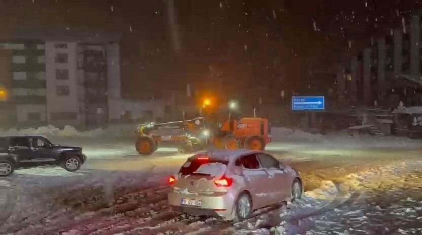 Karayolları ekipleri hem oteller bölgesinde hem de yol güzergahında kar küreme çalışması yapıyor.