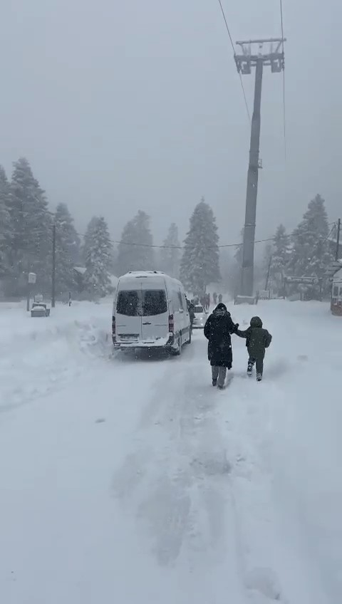 Kış turizminin en önemli merkezlerinden Uludağ’da kar kalınlığı 64 santimetreye ulaştı. Yoğun kar yağışında Uludağ’a hazırlıksız çıkan araç sürücüleri de zor anlar yaşadı. Öğrencilerin bulunduğu midibüs kara saplanınca içindekiler zıplayarak aracı harekete geçirmeye çalıştı. Kara saplanan bir SUV ise küreme makinesiyle sürüklenerek kurtarıldı. O anlar kameralara yansıdı.
