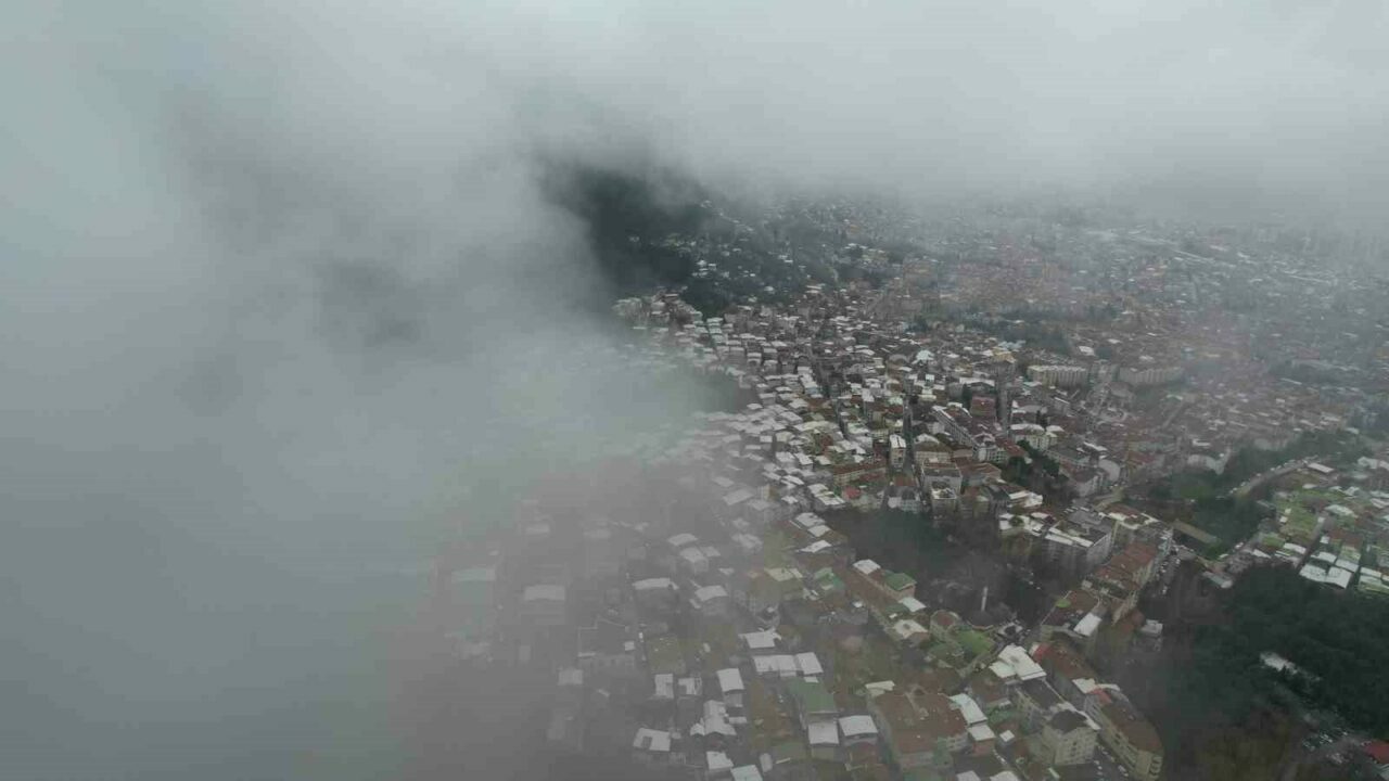 Bursa’da Uludağ’dan şehir merkezine doğru inen sis tabakası kentin birçok noktasını etkisi altına aldı. Dağ eteklerinden başlayarak Bursa Ovası’na kadar yayılan sis, ortaya kartpostallık görüntüler çıkardı.