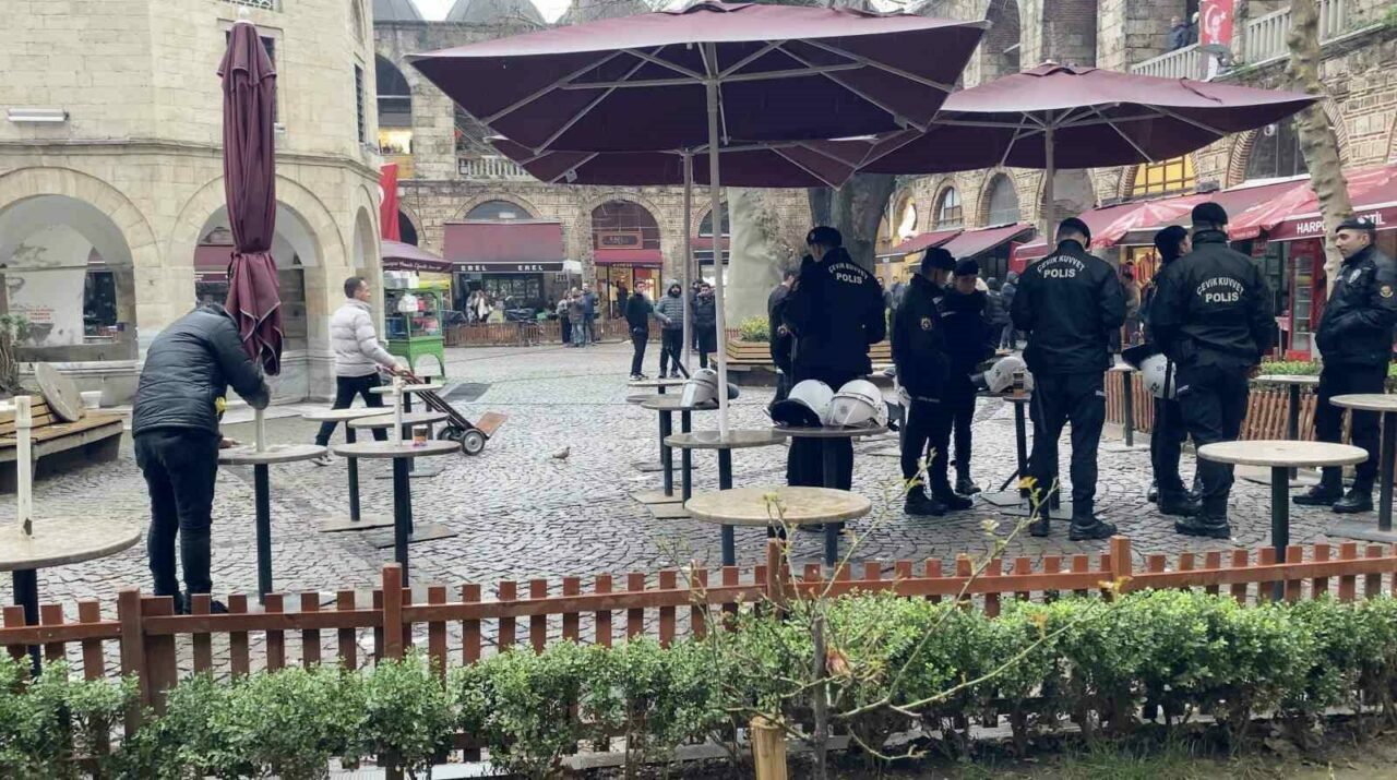 Bursa’nın simge yapıları arasında yer alan ve UNESCO Dünya Mirası Listesi’nde bulunan Hanlar Bölgesi’nin önemli noktalarından Kozahan’da, masa ve sandalyelerin kaldırılmasıyla birlikte tansiyon yükseldi. Osmangazi ilçesindeki tarihi handa bazı esnaflar alınan karara tepki gösterirken, yaşanan tartışmaların ardından avlu çevik kuvvet polisi eşliğinde tamamen boşaltıldı.
