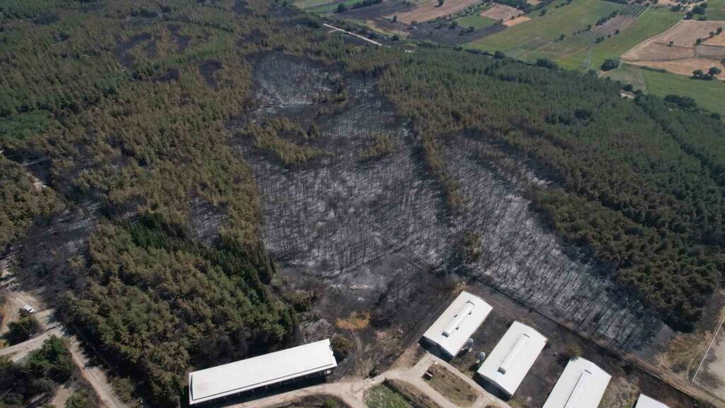 Bursa’da anız yangını olarak başlayan ve sonrasında Uludağ Üniversitesi kampüsündeki ormanlık alana sıçrayan yangının acı bilançosu bugünün ilk ışıklarıyla havadan görüntülendi. Görüntülerde Veterinerlik Fakültesi’nin tesislerinin ve barınaklarının da büyük tehlike atlattığı gözler önüne serildi.