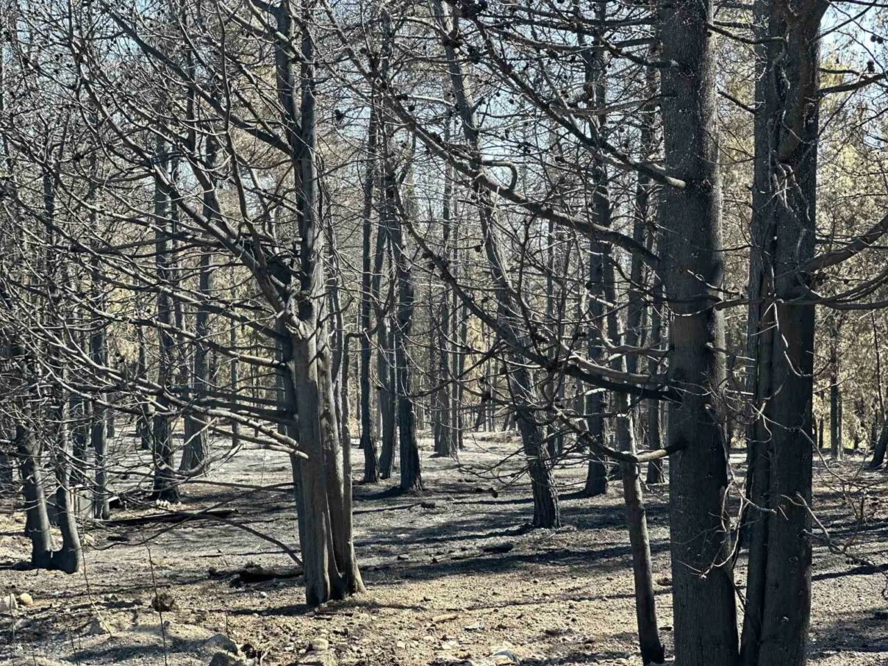 Sabahın ilk ışıklarıyla beraber Uludağ Üniversitesi’nin alevlere teslim olan Görükle kampüsü içindeki ormanlık alanları havadan dron ile görüntülendi. Görüntülerde çamlarla bezeli ormanlık alanın yeşilden griye dönmesi yürekleri dağladı.
