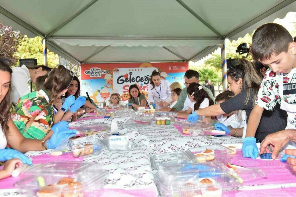 Çocuk Sahne’de ise gün boyunca BUSMEK ve Müzeler Şube Müdürlüğü’nün katkılarıyla ‘Ebeveyn ve Çocuk kek Yapımı ve Süsleme Atölyesi’, masal ve Karagöz Hacivat gölge oyunu sahnelendi. Aileleriyle birlikte önlükleri giyerek kek yapan çocuklar, hem eğlendi hem de keyifli zaman geçirme imkanı buldu.