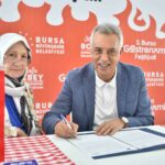 Bursa Büyükşehir Belediyesi tarafından 13-14-15 Eylül tarihlerinde Merinos Parkı’nda düzenlenecek olan 3. Bursa Gastronomi Festivali’nin heyecanı tüm kenti sardı. Bir yandan Gastronomi Tırı 17 ilçeyi gezerek Bursa’nın kendine özgü lezzetleri tanıtılırken, bir yandan da festivalin hazırlıkları tüm hızıyla sürüyor. Pek çok yeniliğin Bursalılarla buluşturacağı festivalde, üretim ve satış yapma kapasitesini elde etmiş kadın kuruluşlarını desteklemek amacıyla ‘Bursa üreten kadınlar sokağı’ da oluşturulacak. Festival öncesinde Bursa Büyükşehir Belediyesi ve 41 kadın kuruluşu arasında düzenlenen törenle sözleşme imzalandı. Merinos Atatürk Kongre Kültür Merkezi’ndeki programa, Bursa Büyükşehir Belediye Başkanı Mustafa Bozbey’in eşi Seden Bozbey, Büyükşehir Belediyesi Genel Sekreter Yardımcısı Mehmet Yıldız, Dış İlişkiler Dairesi Başkanı Pınar Işıkyıldız, Kültür AŞ Genel Müdürü Yankı İçöz, belediye bürokratları, kadın dernekleri ve kooperatiflerinin üyeleri katıldı.