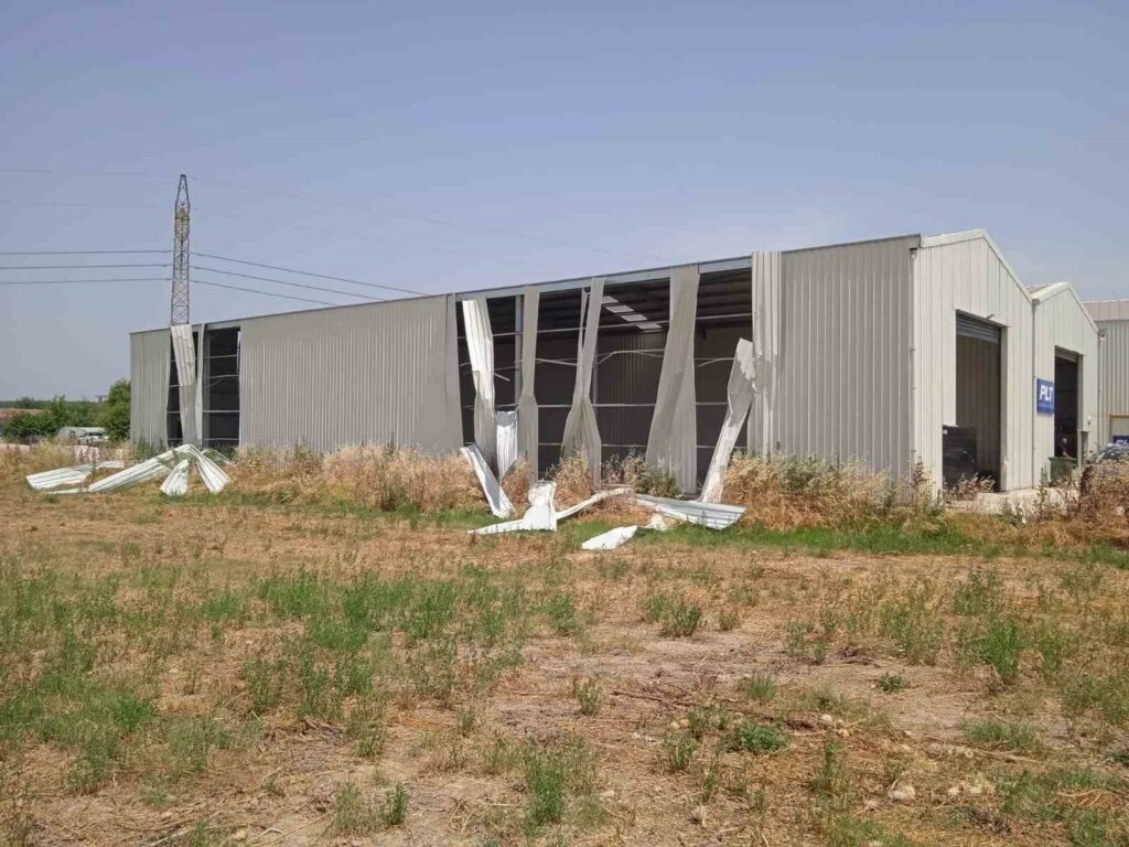 Ürünlü Mahallesi’nde bin 300 metrekarelik alanda ve Aladdinbey Mahallesi’nde 4 bin 300 metrekarelik alanda tarım arazileri üzerine inşa edilen, imalathane ve depo olarak kullanılan iş yerleri, güvenlik önlemleri alınarak kısmen yıkıldı.
