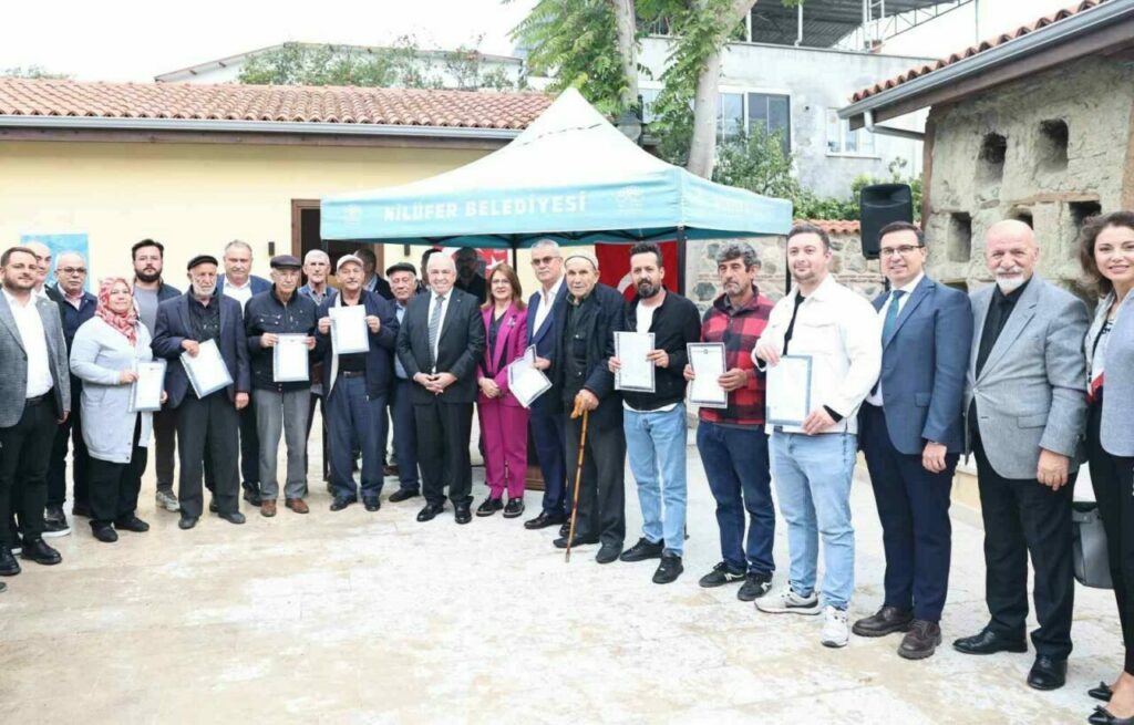 Nilüfer Belediyesi, Ürünlü Mahallesi’nde yürüttüğü 1/1000 Ölçekli Kentsel Sit Alanı ve Yakın Çevresi Koruma Amaçlı İmar Planı çalışmalarını tamamladı. Ürünlü Arı Evi’nde düzenlenen törenle imarlı tapular sahiplerine teslim edildi.