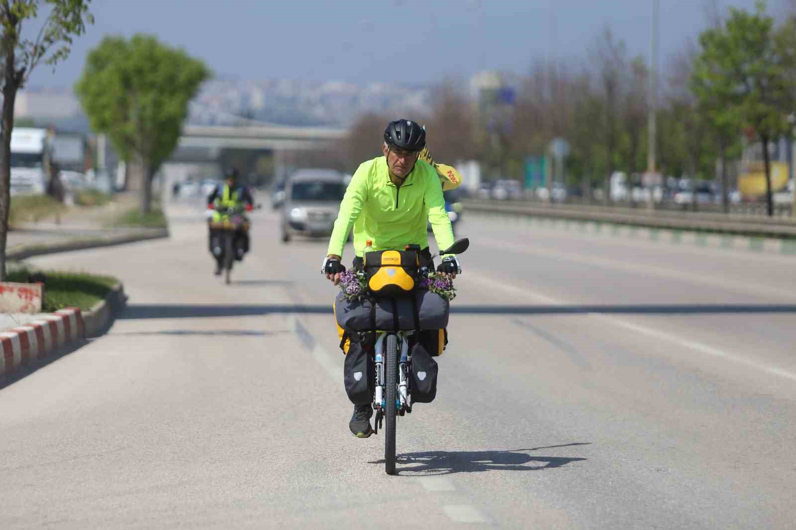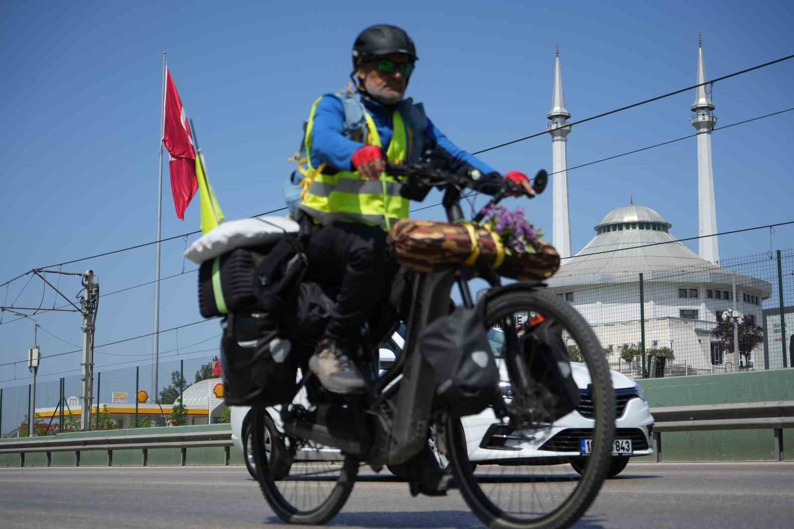 Üsküp’ten Mekke’ye gitme fikrinin birden geldiğini belirten Qamuran Hirda, “Bisiklet sporu ile uğraşıyorum. Bu fikir aklıma oradan geldi. Yaklaşık 4 bin kilometre yapacağım. Daha önceden 2 defa bin kilometre Çanakkale’ye gittim. Bu yaptığım benim için fazla ama Allah’ın izniyle gideceğim. 1 Nisan’da Üsküp’ten yola çıktım. Bugün 10. gün. Yeşil Bursa’ya geldik ziyaret edeceğim. Burada akrabalarım var. Benim niyetim hem Hacca gitmek hem de akrabaları, tarihi ve kültürel yerleri ziyaret etmekti. Bir gün Bursa’da kalacağım daha sonra devam edeceğim. Bursa’ya kadar bin kilometre yaptım. 3 bin kilometre daha yolum var. Ramazanda oruç tuttuk. İlk 3 gün biraz zorlandık. Niyetimiz sağlam olduğu için her şey geçti. Bursa’dan İnegöl’ü gezeceğim. Konya’da tarihi ve kültürel yerleri de ziyaret edeceğim. Oradan sonra Adana ve Gaziantep’e gideceğim. Gaziantep’den uçağa bineceğiz. Ortadoğu’da savaş olduğundan dolayı sınırlar kapalı. Savaş olmasaydı Suriye’yi de gezmeye niyetim vardı. Uçaktan sonra Mekke’ye bisiklet ile devam edeceğiz” dedi.