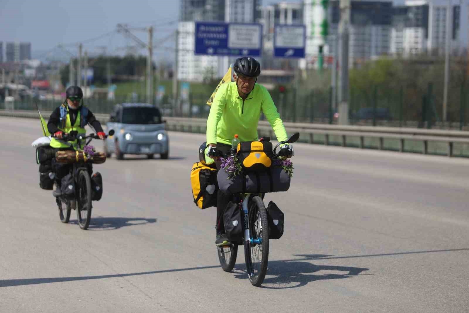 Kuzey Makedonya’nın başkenti Üsküp’ten Hac vazifelerini yerine getirmek için bisikletle yola çıkan Makedonyalı Arnavut Qamuran Hirda ile Boşnak Adem Aljic Bursa’da mola verdi. Bin kilometre pedal çevirerek Bursa’ya gelen ikili, Ulu Cami ve tarihi mekanları ziyaret etti.