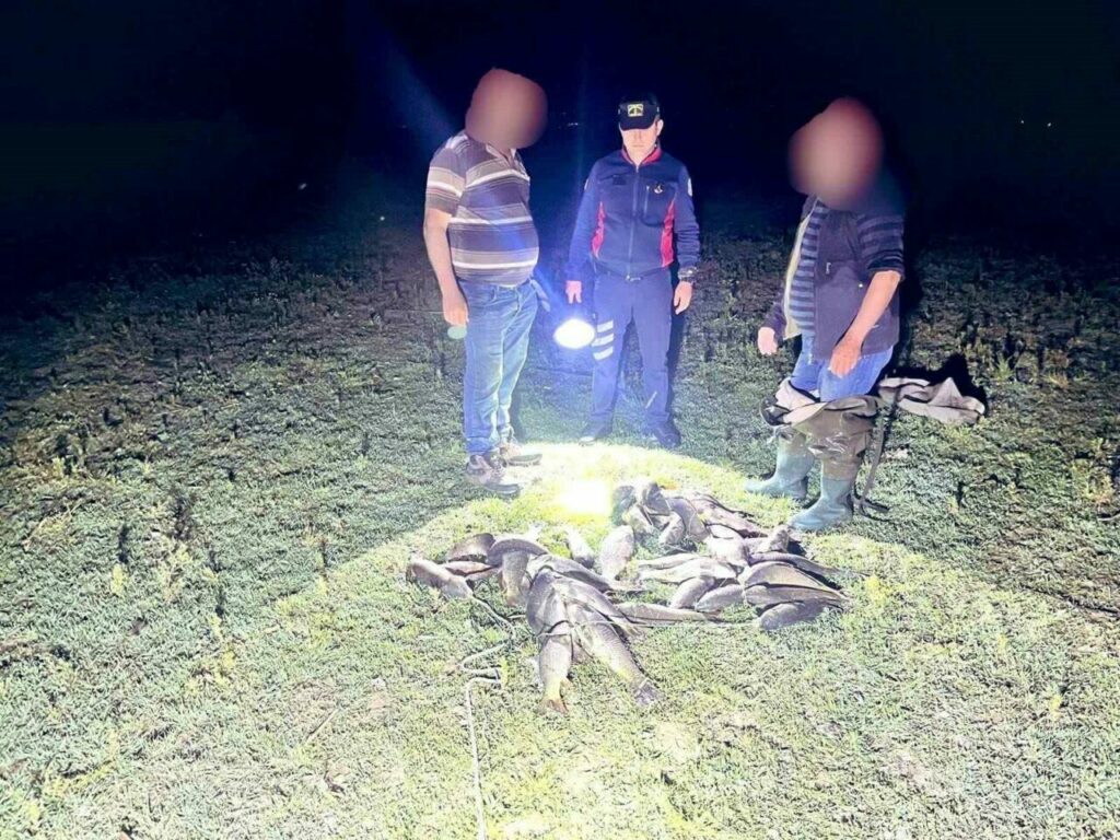 Uluabat Gölü’nde usulsüz su ürünleri ve kara avcılığı yapan 4 şahsa 67 bin 210 lira idari para cezası kesildi. Ayrıca 2 adet serpme ağ, 216 adet pinter, 5 kilogram canlı kerevit balığı 461 kilogram canlı sazan balığına el konuldu.