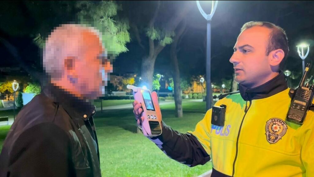 16 BLY plakalı otomobilini bırakarak yaya olarak kaçmaya çalışan Hikmet K., polis ekipleri tarafından kovalamaca sonrası yakalandı. Alkol testi sırasında çekim yapan gazeteciye ’beni çekiyorsun, kameranı aç polislere sigara ikram edeceğim’ diyen sürücü, ’şimdi bu arkadaş biraz agresif davrandı, biriniz sigara almanız lazım’ diye görev başındaki polislere sigara ikram etti. Polis memuru ise, ’görev başında kullanmıyoruz’ diye cevap verdi. Alkolmetreyi üfleyen Hikmet K., 1.58 promil alkollü çıktı. Hikmet K., ifadesi alınmak üzere karakola götürülürken, 9 bin lira da para cezası kesildi.