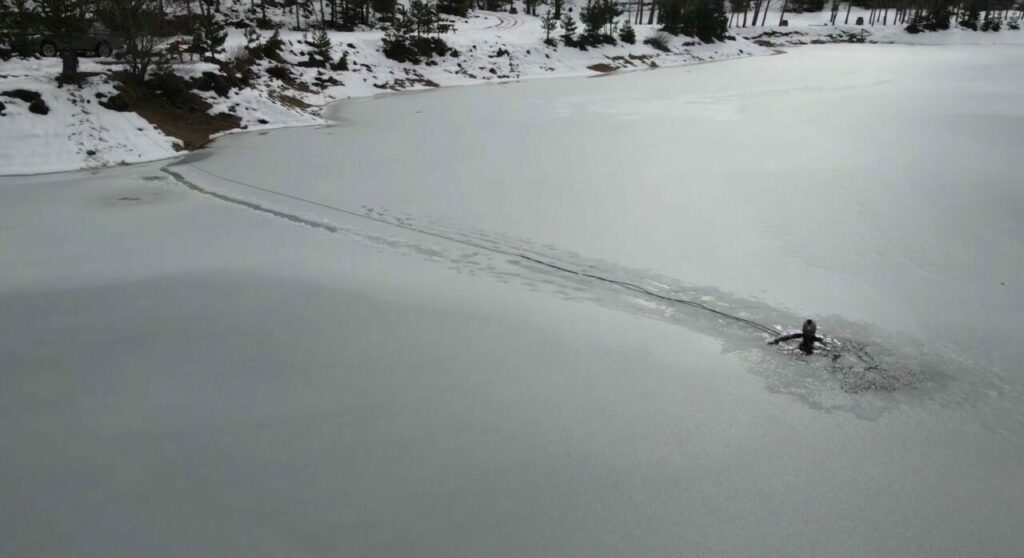 BURSALI DAĞCI YILLAR ÖNCE BAŞLATTIĞI BUZ TUTAN GÖLE GİRME GELENEĞİNİ BU YILDA GERÇEKLEŞTİRDİ. 6 YILDIR ULUDAĞ’IN BUZ TUTAN GÖLLERİ ÜZERİNDE YÜRÜYÜP DAHA SONRA BUZU KESEREK İÇİNE GİREN TECRÜBELİ DAĞCI İSMET ŞENTÜRK BU YILDA ÜZERİNDE ÇÖKERTME OYNADIĞI GÖLÜ BUZLU TABAKASINI KIRIP İÇİNE GİRDİ.