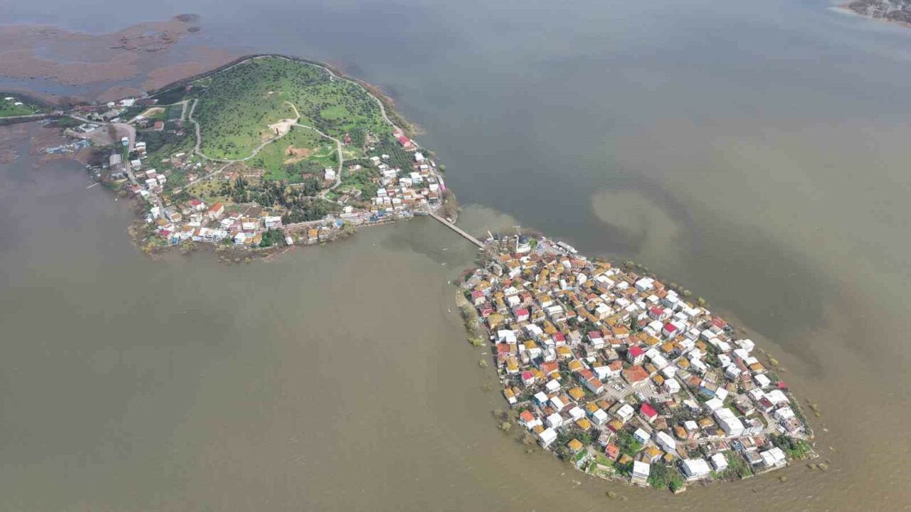 Yağışların etkisiyle su seviyesini yükselen Uluabat Gölü’nde, en derin yeri 10 metreyi geçerken, 15 yıldır görülmeyen oldu ve Gölyazı Mahallesi’nin çevresindeki yollar göl sularıyla kaplanınca kapandı.