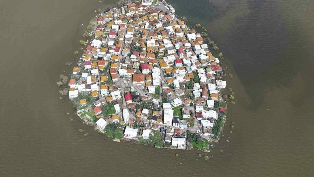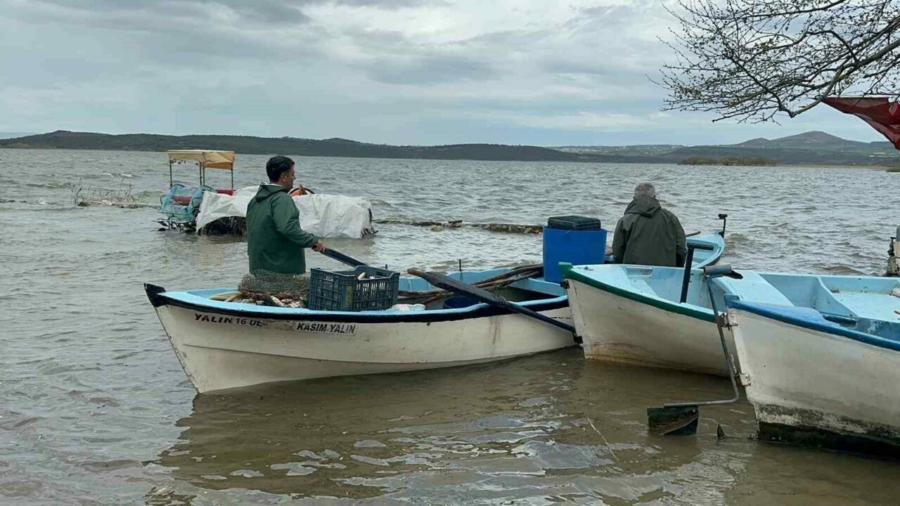 Yağışların etkisiyle su seviyesini yükselen Uluabat Gölü’nde, en derin yeri 10 metreyi geçerken, 15 yıldır görülmeyen oldu ve Gölyazı Mahallesi’nin çevresindeki yollar göl sularıyla kaplanınca kapandı.