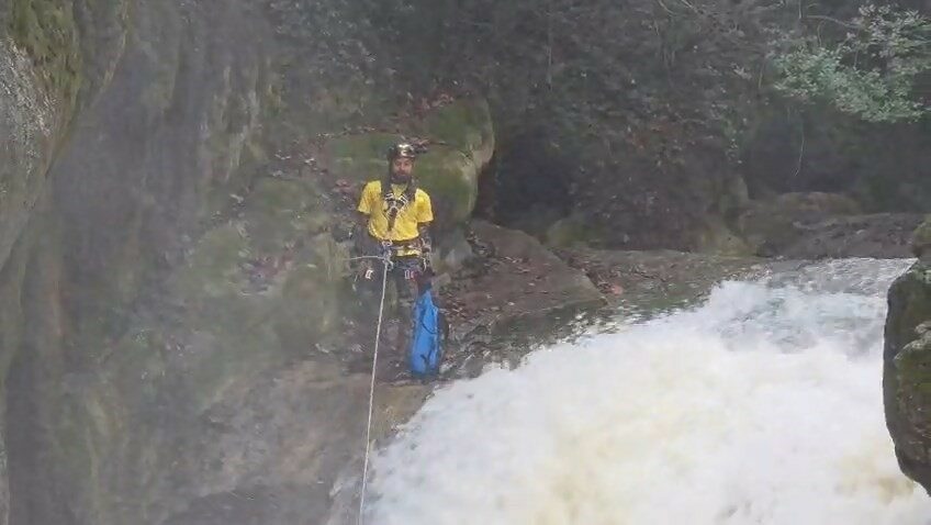 Bursa’nın Orhangazi ilçesinde bulunan Sölöz Kanyonu’nda doğa yürüyüşüne çıkan ekip, parkurda yaşadıkları zor anlar bu sözlerle dile getirdi. Dağcı İbrahim Taşçı, “Biz bu sporu severek yapıyoruz. Türkiye’nin dört bir yanında böyle kanyonlardan geçiyoruz” dedi.
