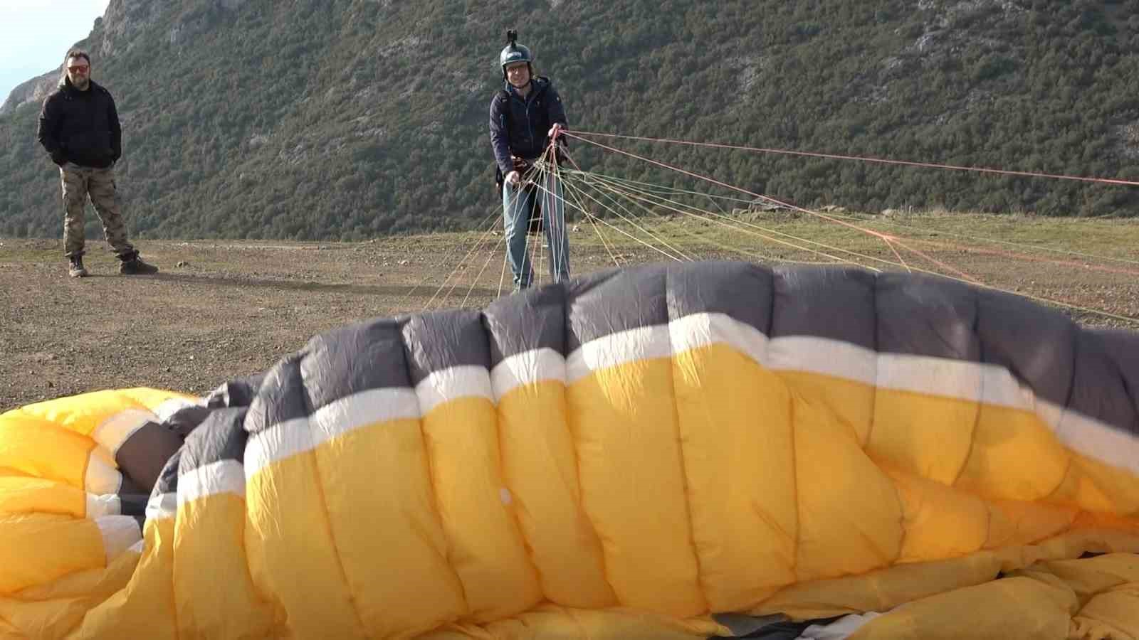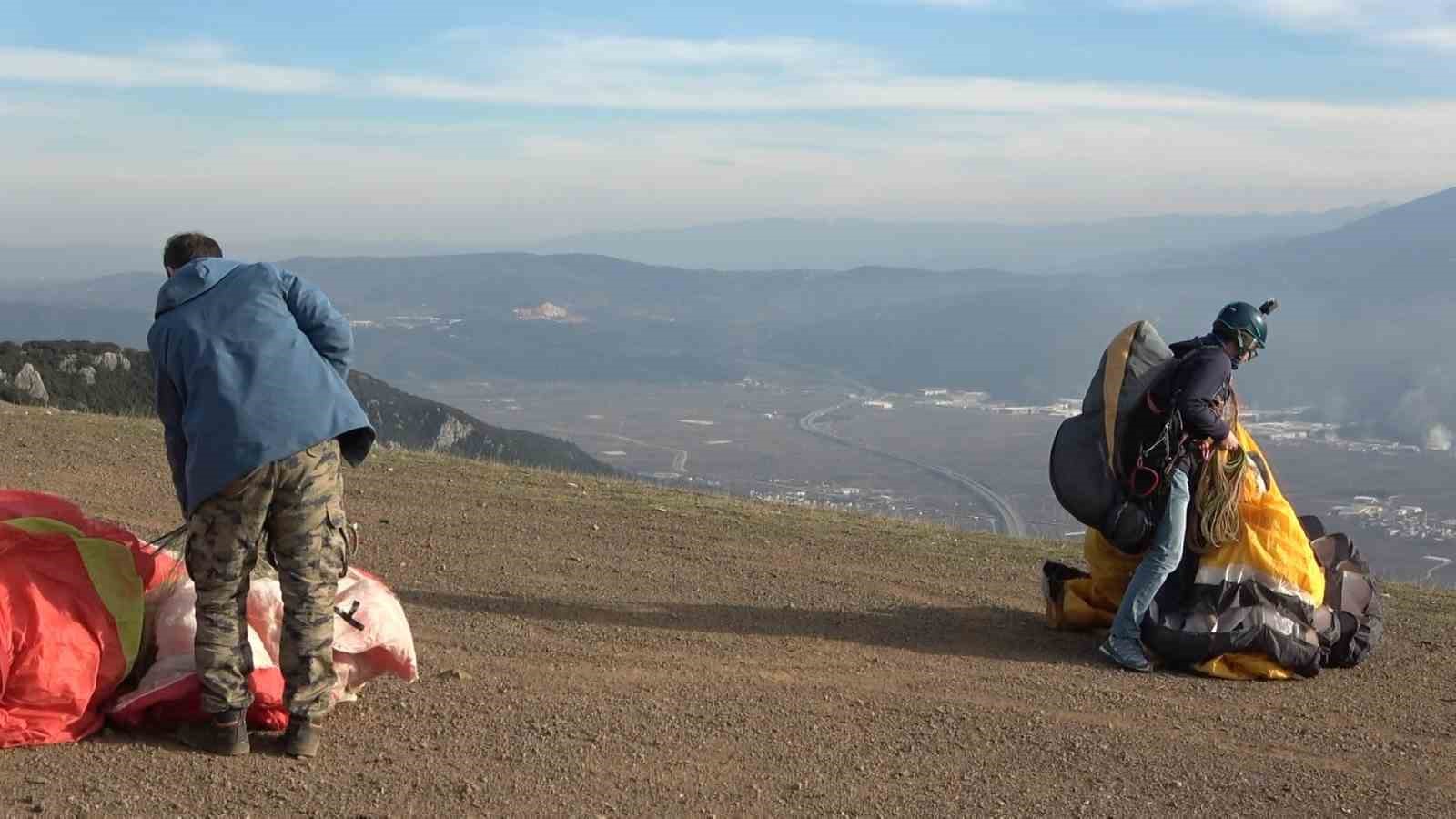 O anları anlatan Hüseyin Kartol, “Saat 2 sıralarında burada yamaç paraşütü için yani hazırlık yaparken, yamaç paraşütü pilotu olan arkadaşımız bize daha önceden haber vererek selamlama uçuşu gerçekleştirdi. Kendisine buradan çok teşekkür ediyoruz. Yamaç paraşütü yapmak isteyenleri Bursa’ya bekliyoruz. Zaten önceden planlandığı için biz kurgumuzu hazırladık. Güzel de oldu. Videoyu da sosyal medya platformlarında paylaştık” dedi.