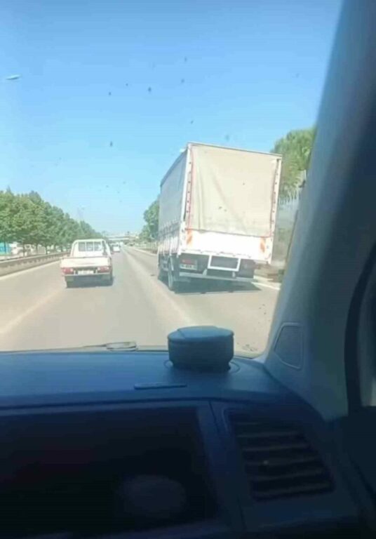 Bursa’da trafikte yan şekilde seyreden kamyon, zaman zaman devrilme tehlikesi atlattı. Diğer sürücüler gördükleri karşısında hayrete düştü.