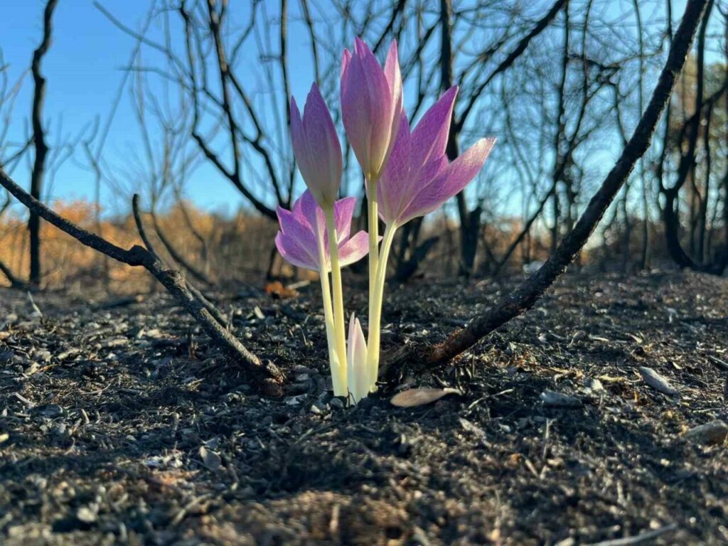 Bursa’nın Yenişehir ilçesine bağlı Marmaracık köyü’nde çıkan yangın sonrası ormanda açan Güz Çiğdemi çiçeği görenleri hayrete düşürdü.