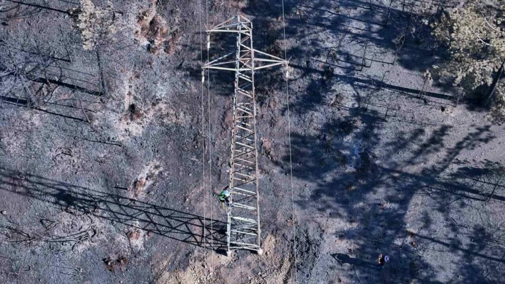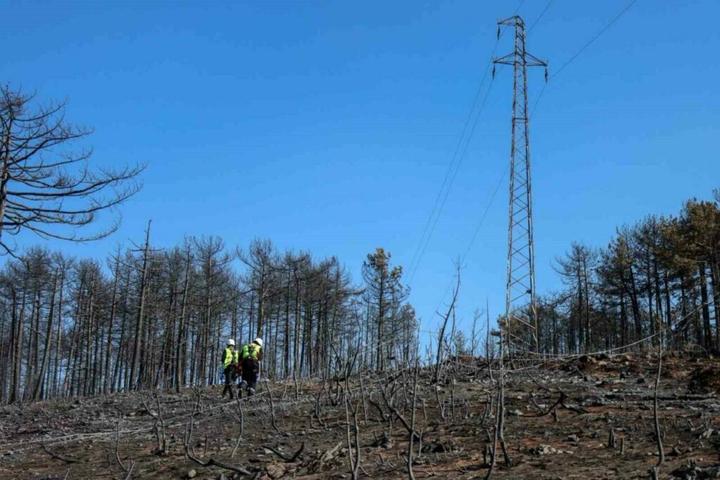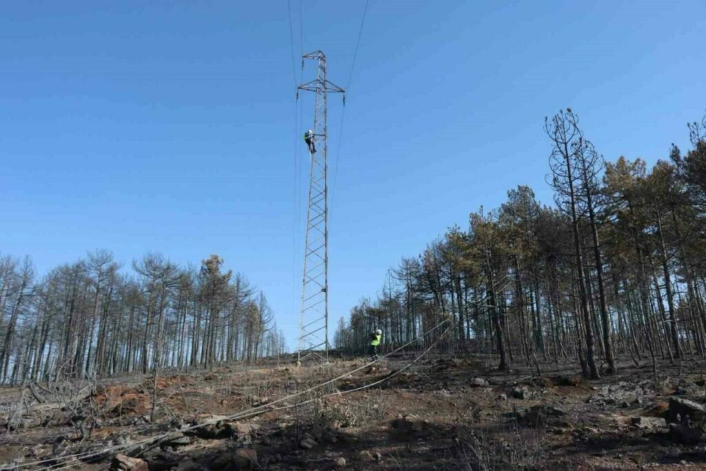 Yangın bölgesinde enerji hatlarının onarımı başladı