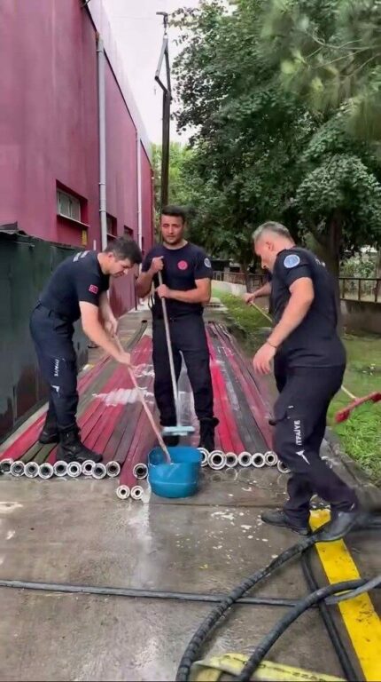 İtfaiyecilerin kendi elleriyle gerçekleştirdiği temizlik çalışması sosyal medyada da paylaşılırken, vatandaşlardan da büyük beğeni topladı.
