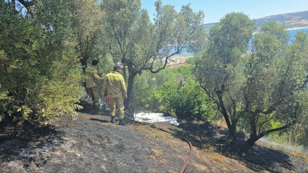 Bursa’nın Mudanya ilçesi Göktepe mevkiinde çıkan yangında yaklaşık 8 dönümlük zeytinlik ve çalılık alan zarar gördü. Alevlerin buğday tarlasına ulaşması son anda engellendi.