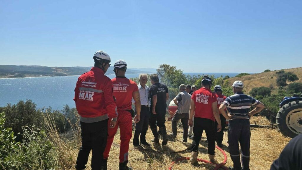 Henüz çıkış nedeni belirlenemeyen yangın, rüzgarın etkisiyle kısa sürede büyüdü. Alevleri fark eden bölge sakinleri, tarımsal sulamada kullanılan mobil su tankerleriyle ilk müdahaleyi yaptı. İhbar üzerine bölgeye Bursa Orman İşletme Müdürlüğü ekipleriyle birlikte Bursa ve Mudanya itfaiyesi ile Mudanya Arama Kurtarma (MAK) ekipleri sevk edildi. Arazinin engebeli yapısı nedeniyle bazı noktalara itfaiye araçları ulaşamadı. Bu bölgelere traktörlerle taşınan su tankerleri yönlendirilirken, traktörün dahi ulaşamadığı alanlara greyder yardımıyla acil müdahale yolları açıldı. Böylece yangının ilerlediği noktalara ulaşılarak müdahale genişletildi. Yangın, bölgeye yakın konumda bulunan onlarca dönümlük buğday tarlasına ulaşmadan önce kontrol altına alındı. Erken müdahale sayesinde büyük bir faciadan dönüldü. Ekiplerin bölgedeki soğutma çalışmaları sürüyor.