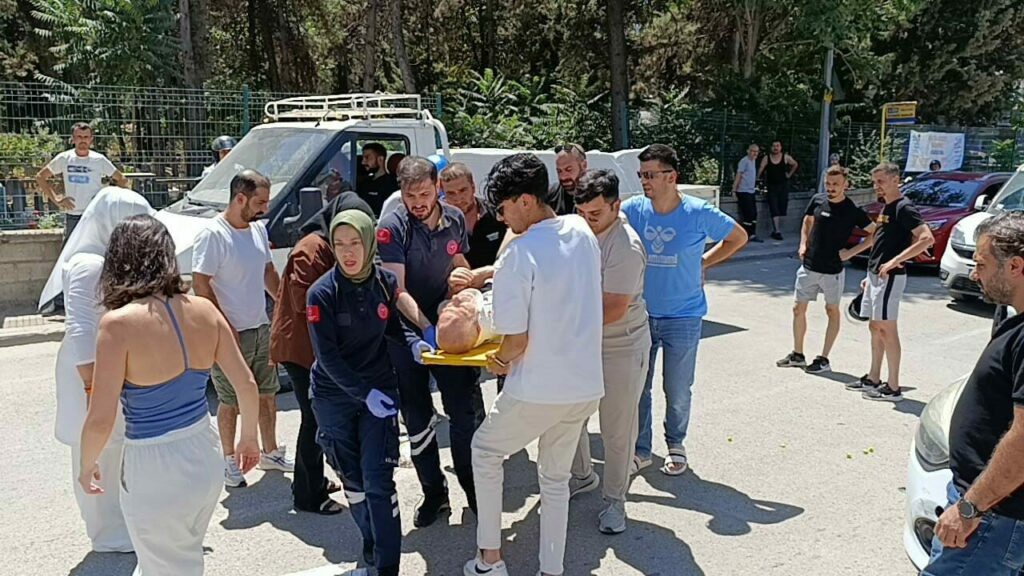 Bursa’nın İnegöl ilçesinde meydana gelen kazada otomobilin çarptığı bisikletli yaralandı. Vatandaşlar, yaralanan adamın üzerine örtü tutarak onu güneşten korudular.