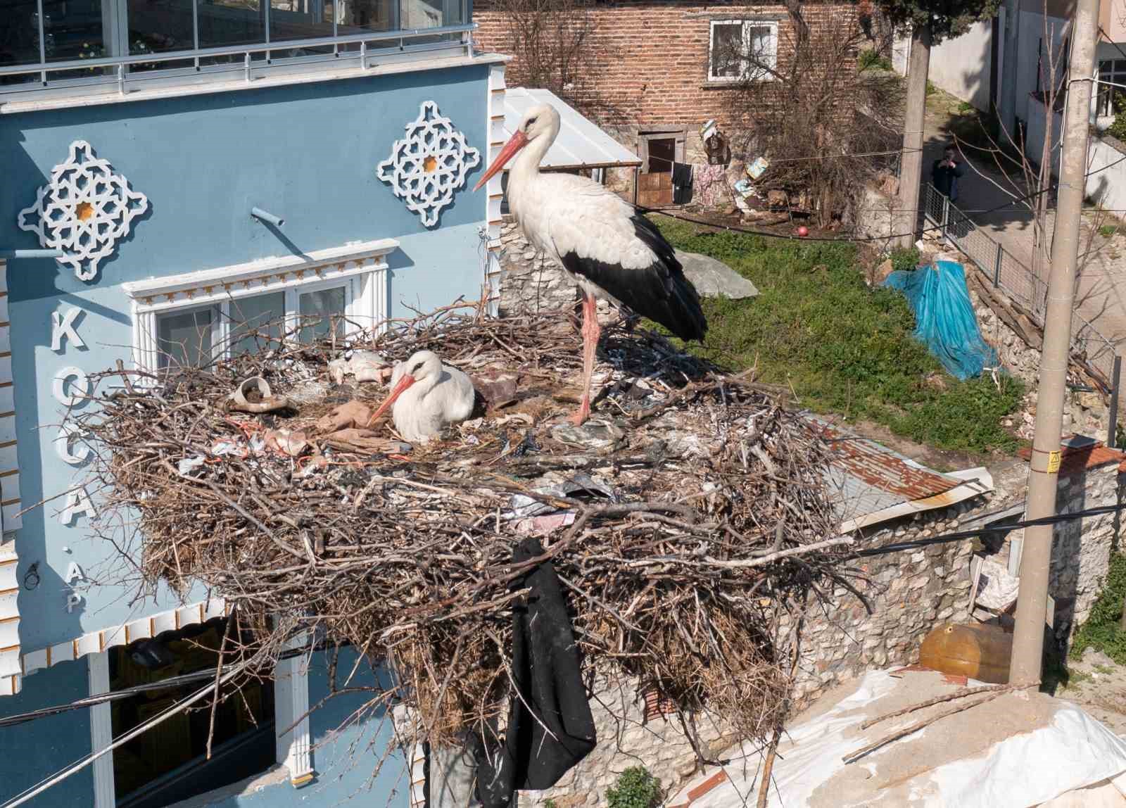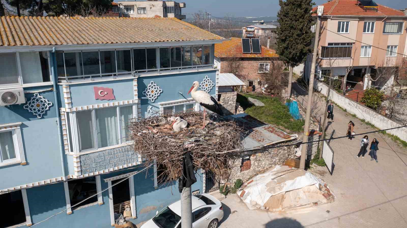 Son 13 yıldır çıktığı her göç yolculuğunda Bursa’daki kayıkçı dostu Adem amcayı unutmayan Yaren leylek bu yıl eşi Nazlı ile birlikte geldiği Eski Karaağaç köyündeki yuvasında güneşli havanın tadını çıkarıyor.