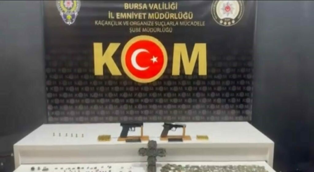 Bursa Emniyet Müdürlüğü Kaçakçılık ve Organize Suçlarla Mücadele Şube Müdürlüğü, Cumhuriyet Başsavcılığı’nın talimatıyla tarihi eser kaçakçılığı ve eserlerin usulsüz ticaretine ilişkin faaliyetlerin deşifresi ve önlenmesine yönelik operasyon yaptı.
