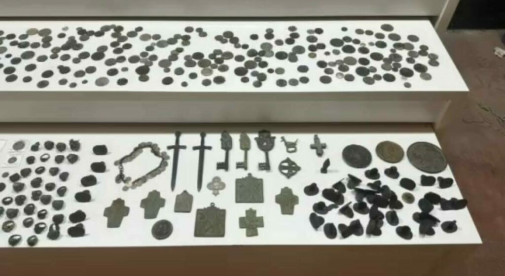 adet sikke, 240 adet obje, 2 adet ruhsatsız tabanca ile bu tabancalara ait 137 adet fişek ve 1 adet el telsizi ele geçirildi. Şüpheli C.E. gözaltına alınırken, gerekli adli tahkikata başlandı.