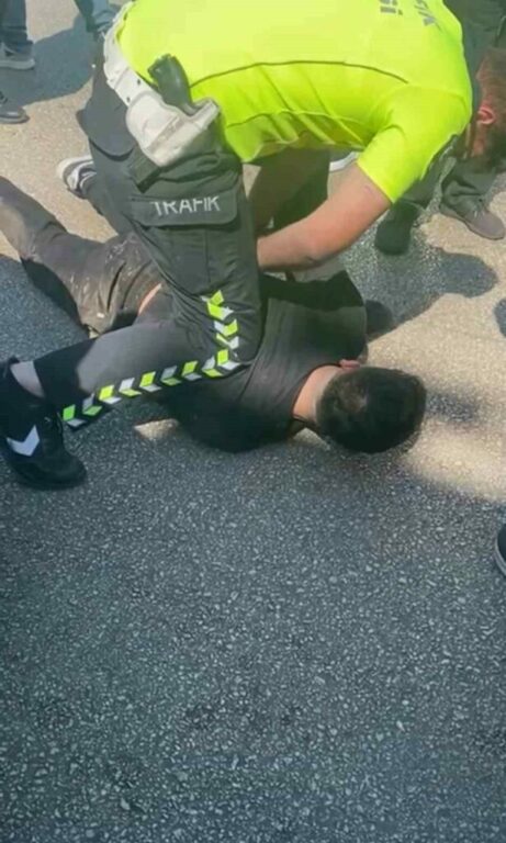 Bursa’da bir sürücü, yolun karşısına geçen yayaya çarptı. Yaşanan kaza sonrası kaçmak isteyen sürücüyü, trafik polisleri durdurdu.
