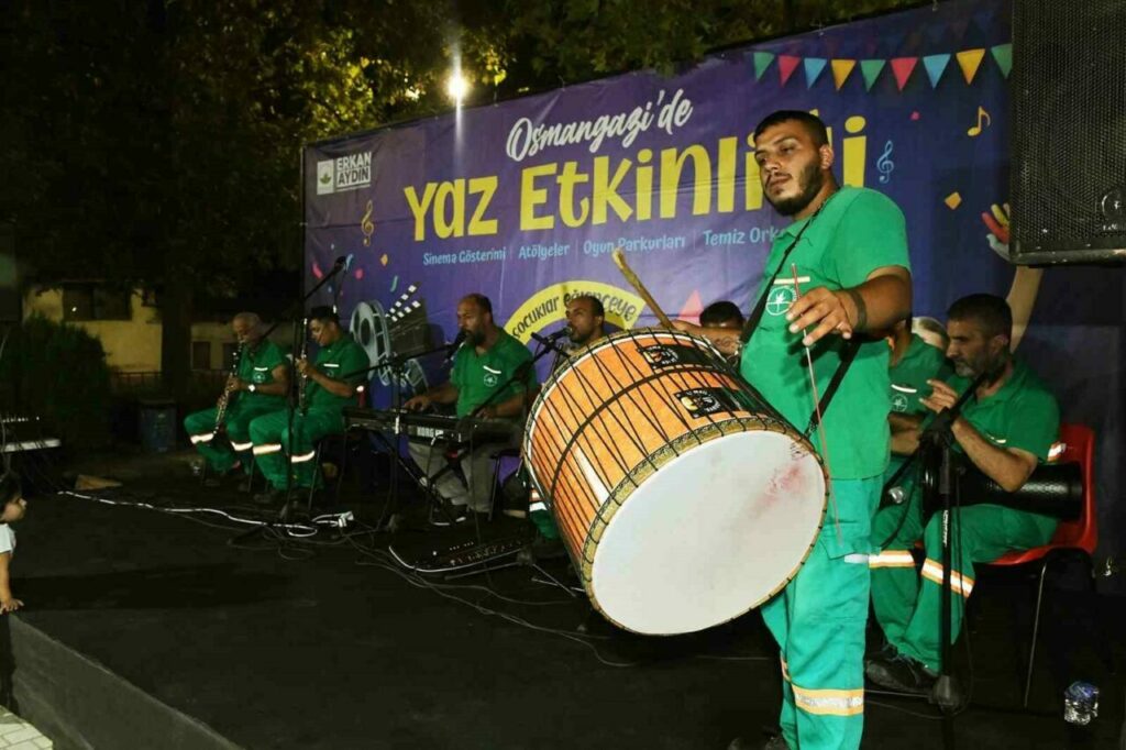 Yeni haftanın ilk etkinliği Yenibağlar Mahallesi’nde gerçekleşti. Mahalle pazar alanına kurulan oyun parkurları ve çeşitli aktiviteler, çocukların enerjisini doyasıya atmasına imkan sağladı. Yüz boyama, balon atölyesi ve interaktif oyunlarla çocuklar eğlenirken, yetişkinler de keyifli vakit geçirdi. Gecenin finalinde ise sahne alan Osmangazi Belediyesi Temizlik İşleri Müdürlüğü personelinden oluşan “Temiz Orkestra”, performansıyla etkinliğe damgasını vurdu. Pop, arabesk ve halk müziğinden seçilen şarkıları başarıyla seslendiren orkestra, izleyenlerden tam not aldı.