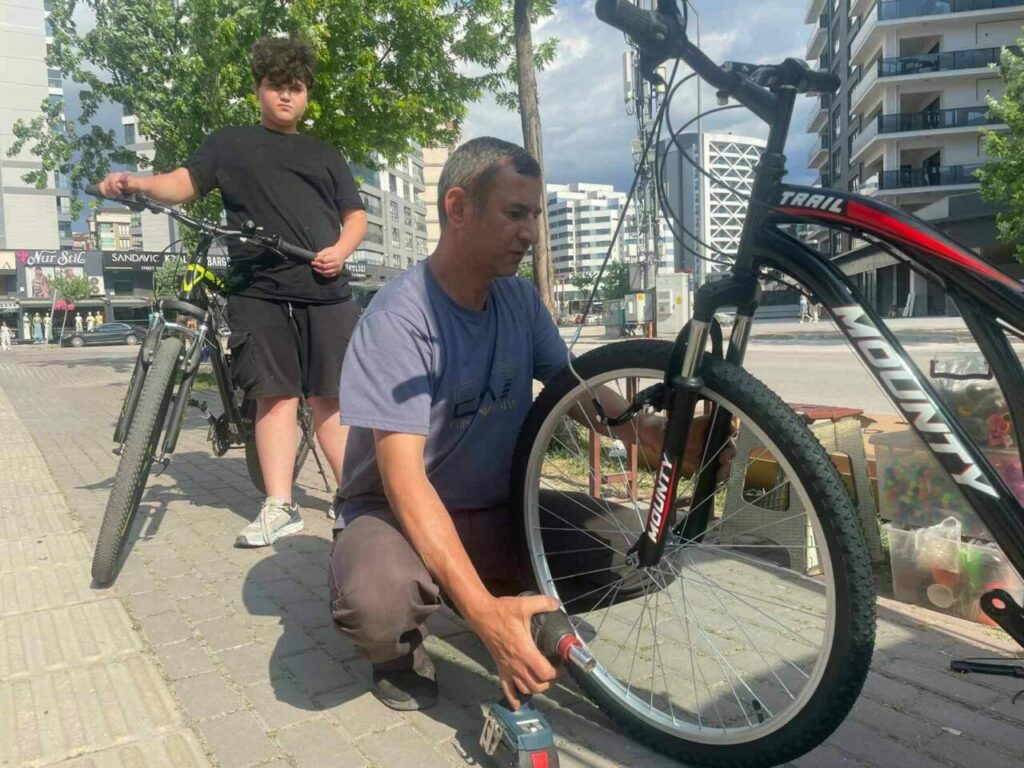 Hava basmanın 10 lira, lastik tamirinin 100 lira olduğunu anlatan Aktürk, “Fren bakımı parça değişmezse 50 lira. Yeni alınmış bir bisiklet toplama, ayarlarını yapma 300 lira, vitesli ise 500 lira. Bazen geç saatlere kadar çalışıyoruz.” dedi.