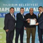 Yıldırım Belediyesi sınırları içerisinde toplam 3 bin 100 hektarlık planlanabilir alan bulunduğunu bunun da 320 hektarlık kısmındaki planlama ve imar çalışmalarını 2109-2024 döneminde tamamladıklarını aktaran Başkan Yılmaz, “Şimdi gayemiz, 515 hektarlık alandaki imar planı ve imar uygulaması çalışmalarını tamamlayarak beş yıllık dönem içerisinde planlanabilir alanda yüzde 27 oranında tapu yenilemesi yaparak hak sahiplerine imar parseli tapularını teslim etmiş olmak. Yıllardır çözüm bekleyen Karapınar Mahallesi’ndeki tapu çalışmalarımızı tamamlayarak, 1. ve 5. Bölge olarak adlandırılan 38 hektarlık alanda yaklaşık bin 503 malike ait imar uygulaması tapularını tescil ettirdik. İmar tapuları çıkan bölgede 1 adet camii alanı, toplam 23 bin metrekare, 6 adet okul alanı ve 34 bin metrekare yeşil alan elde edildi” dedi. Konuşmaların ardından hak sahiplerine tapuları dağıtıldı.