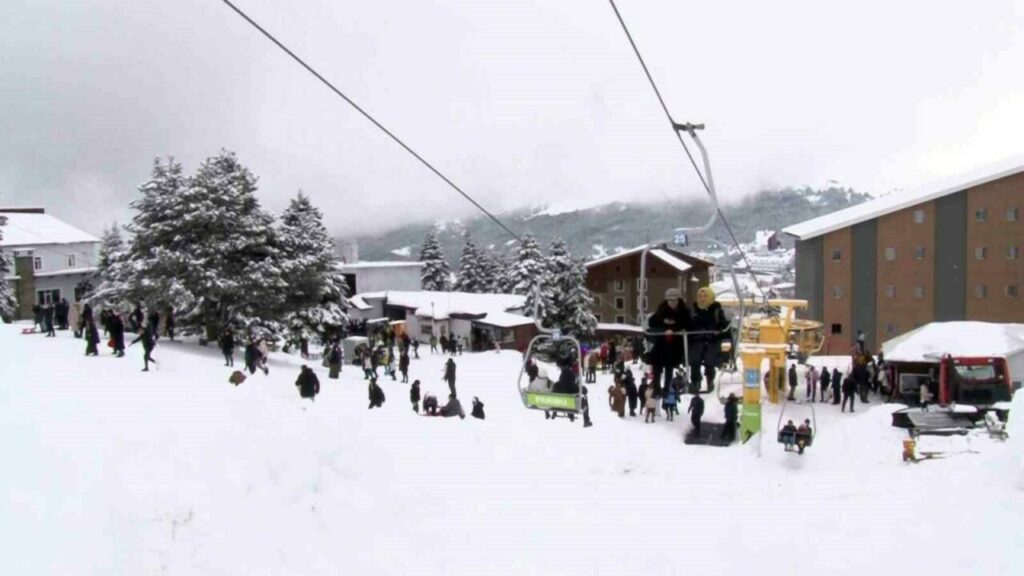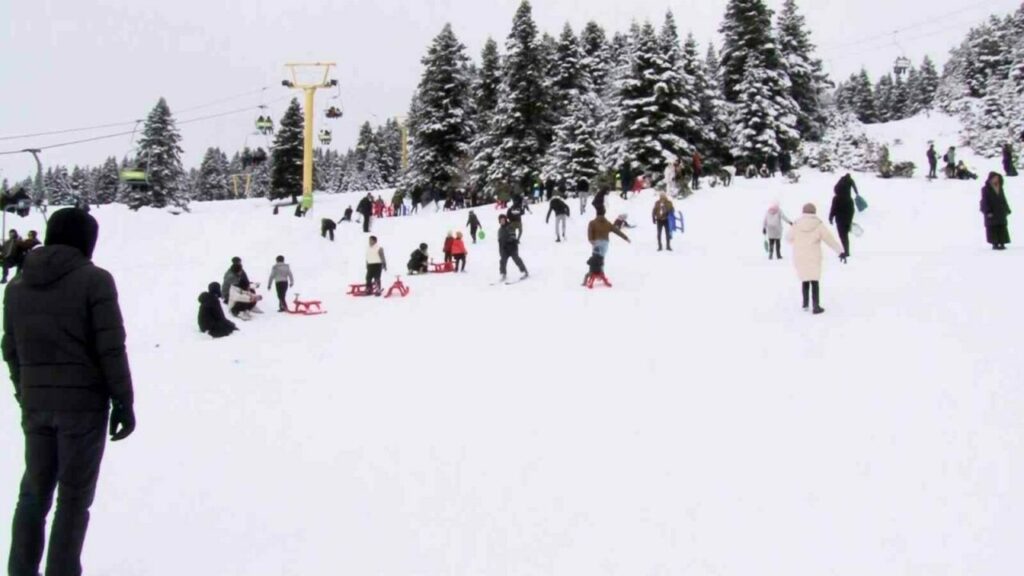 Türkiye’de kış ve kayak turizminin önemli merkezlerinden Uludağ’da, 2025’in ilk pazar gününde yoğunluk yaşandı. Hava sıcaklığı sıfırın altında 6 ila 10 derece arasında seyrederken kar kalınlığı ise yer yer 68 santimetrelere ulaştı. Kar yağışı yerini sisli havaya bırakırken hafta sonunu değerlendiren yerli ve yabancı turistler ise Uludağ’a akın etti. Kayak ve kızaklarıyla pistleri dolduran turistler, karın keyfini doyasıya yaşadı.