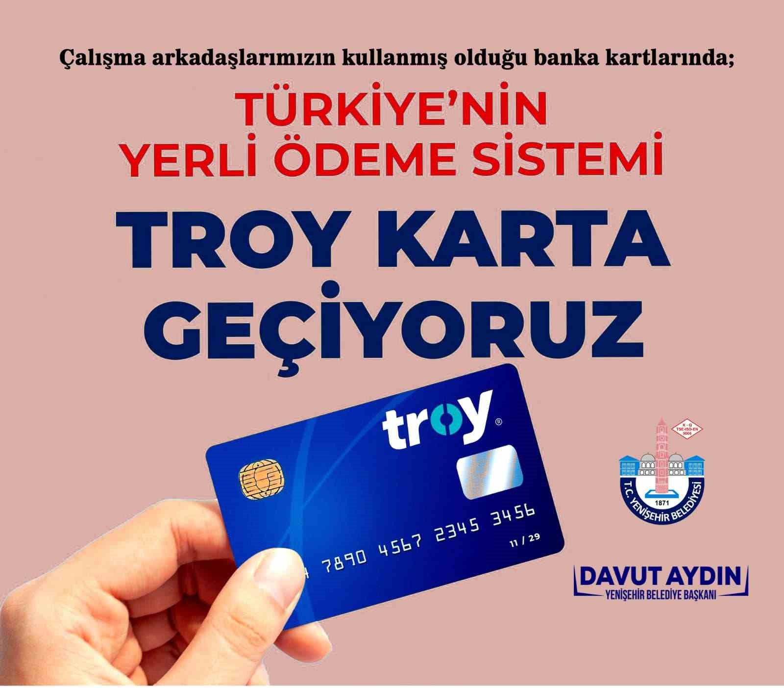 Bursa Yenişehir Belediyesi Bankalararası Kart Merkezince geliştirilen yerli kart TROY’a taşınması kararı aldı. Başkan Aydın Bankaya giderek ilk imzayı attı.