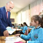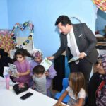 Yenişehir’de okula başlayan çocukları Yenişehir Kaymakamı Osman Aslan Canbaba ve Yenişehir Belediye Başkanı Ercan Özel, yalnız bırakmadı.