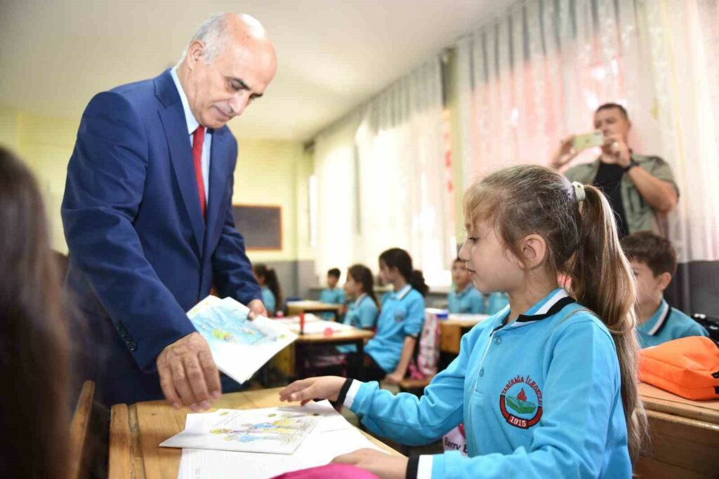 YENİŞEHİR’DE OKULA BAŞLAYAN ÇOCUKLARI YENİŞEHİR KAYMAKAMI OSMAN ASLAN CANBABA VE YENİŞEHİR BELEDİYE BAŞKANI ERCAN ÖZEL, YALNIZ BIRAKMADI. İLK DERSTE YANLARINDA OLAN KAYMAKAM CANBABA VE BAŞKAN ÖZEL, ÖĞRENCİLERE HİKAYE KİTABI DAĞITTI.
