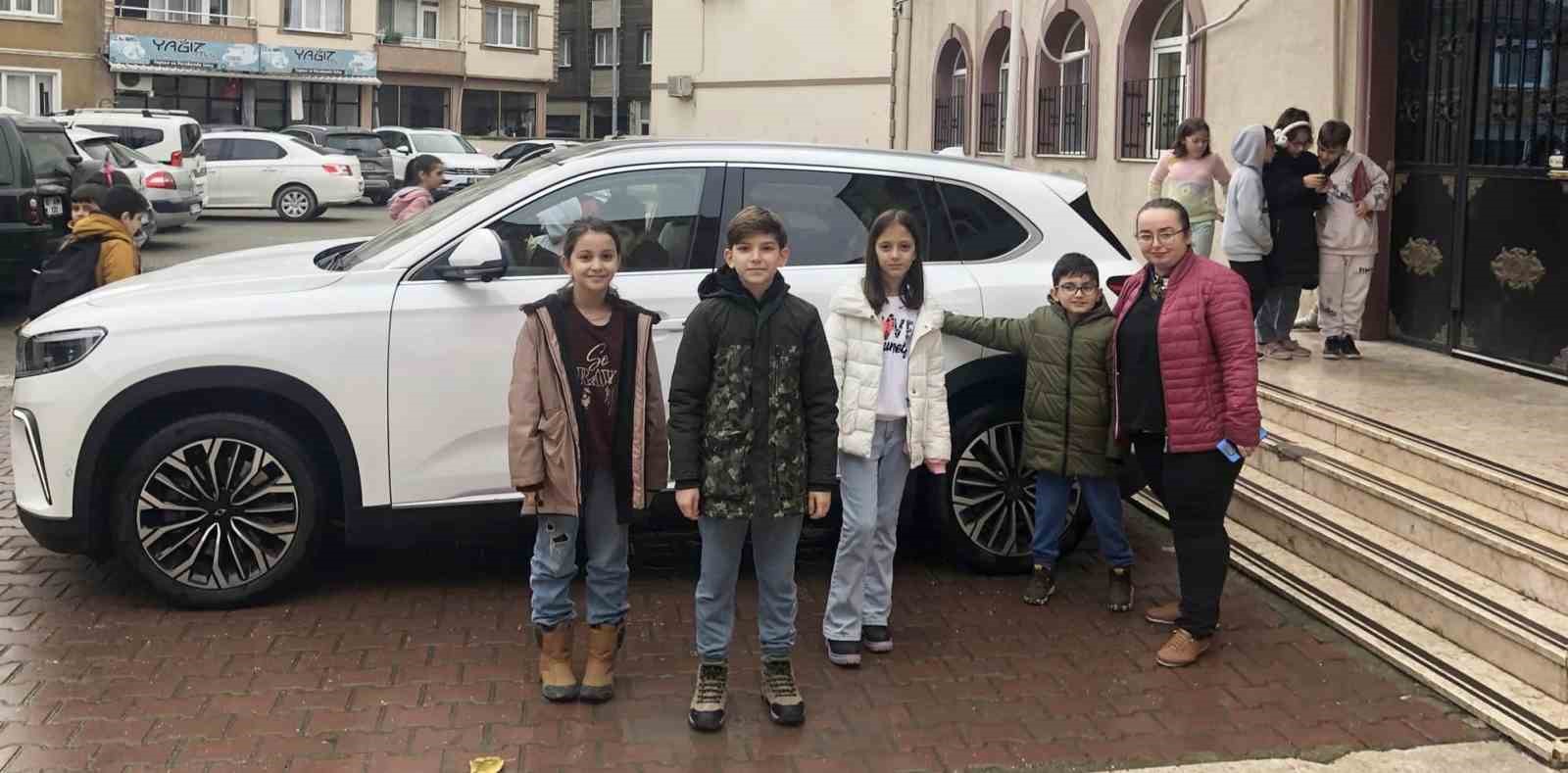 Togg’la bol bol fotoğraf çektiren öğrenciler ve öğretmenler; “Bizlere bu imkânı sağlayan Ticaret Borsası yetkililerimize çok teşekkür ediyoruz” dedi.