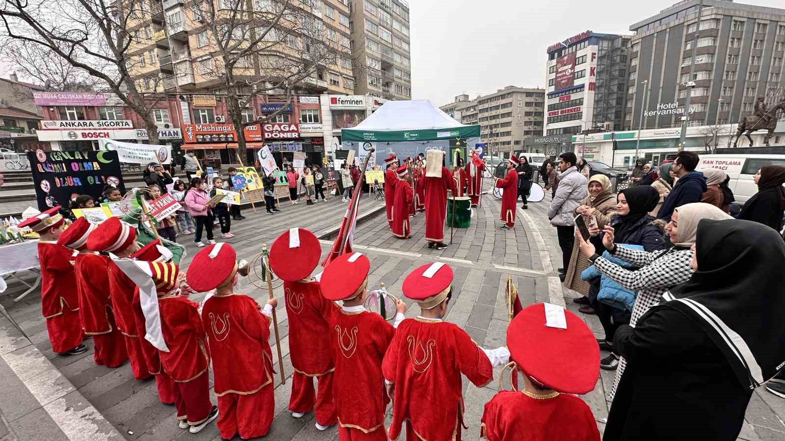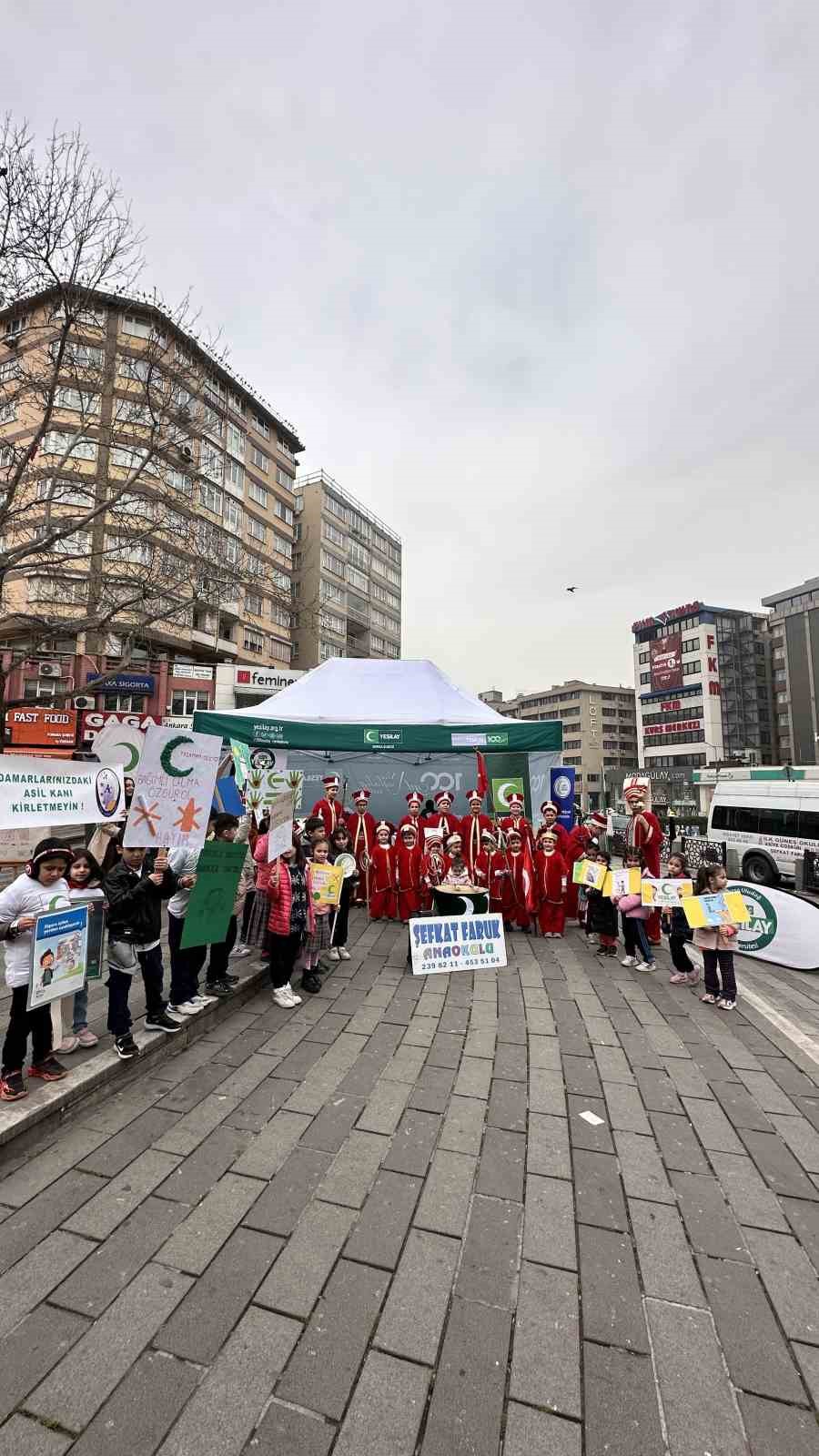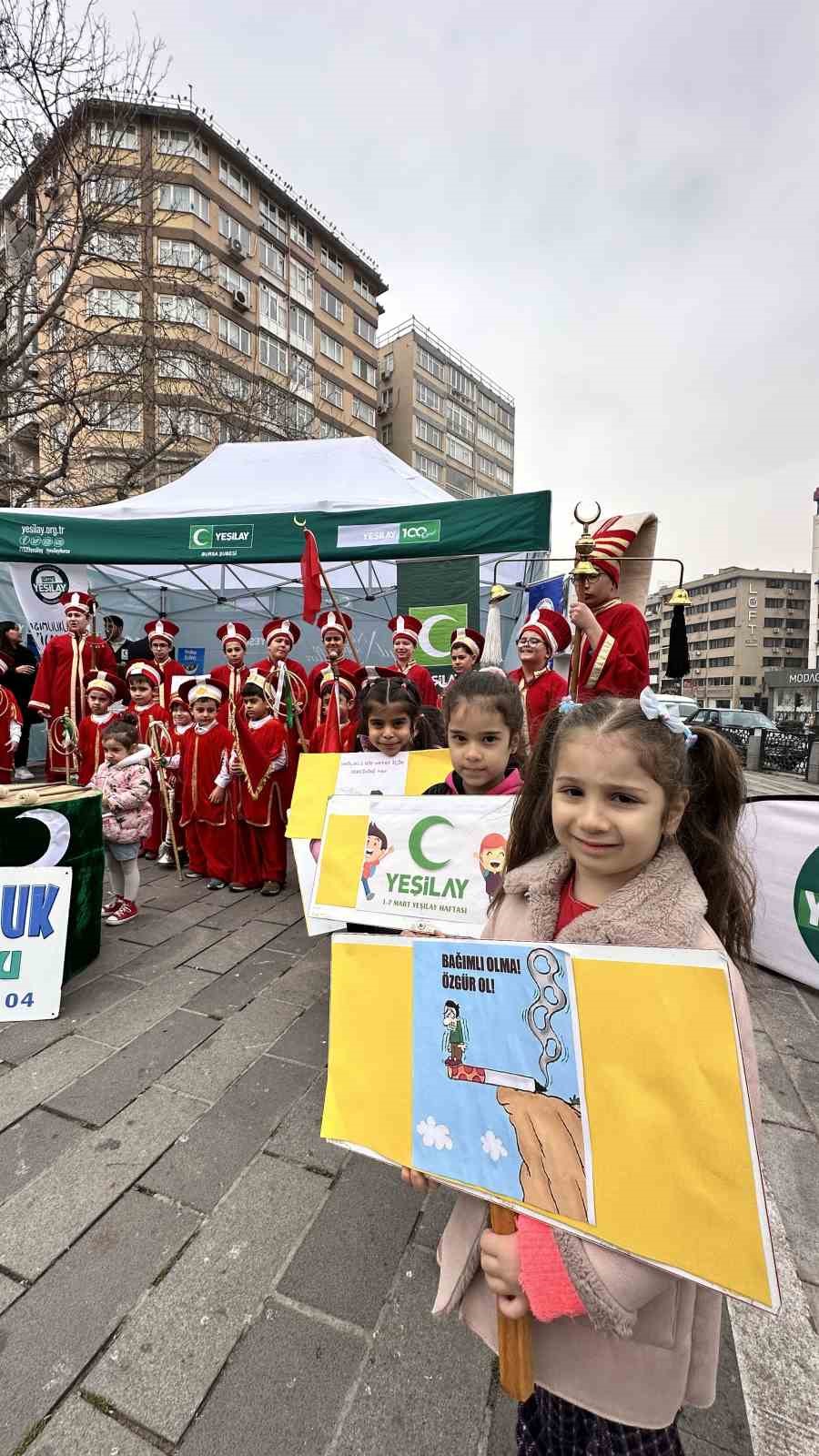 Açılan standın yanında yaşları 8 ila 15 arasında değişen çocuklar mehter marşı çaldı. Yapılan resimler ise farkındalığa dikkat çekti. Kurulan standın 1-7 Mart Yeşilay Haftası boyunca açık kalacağı öğrenildi.