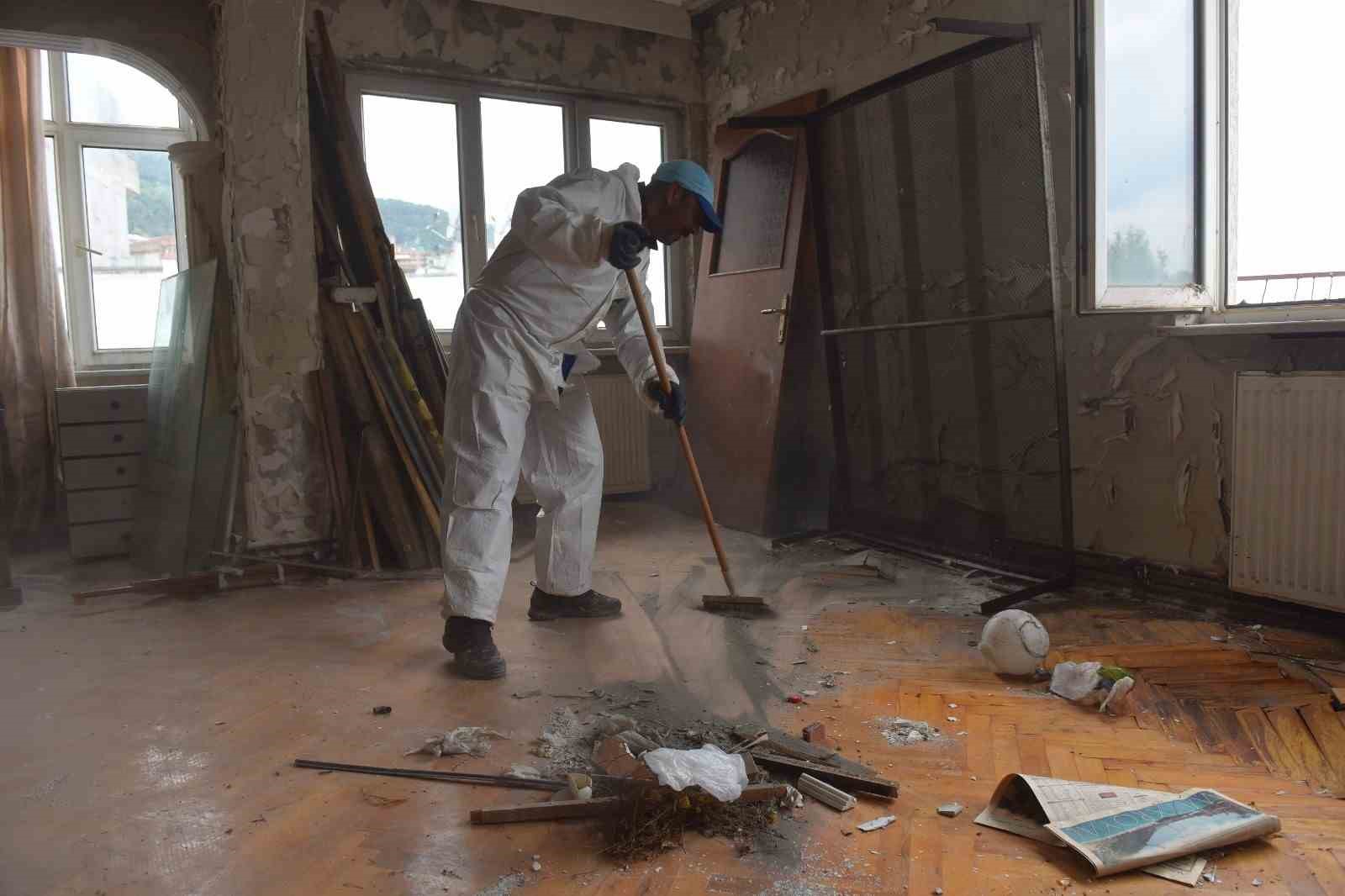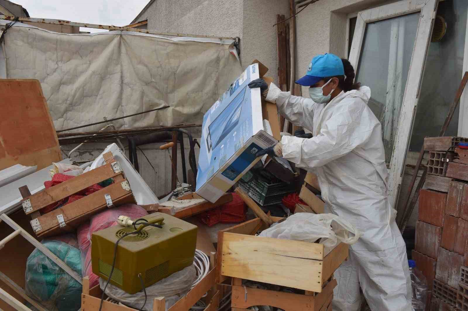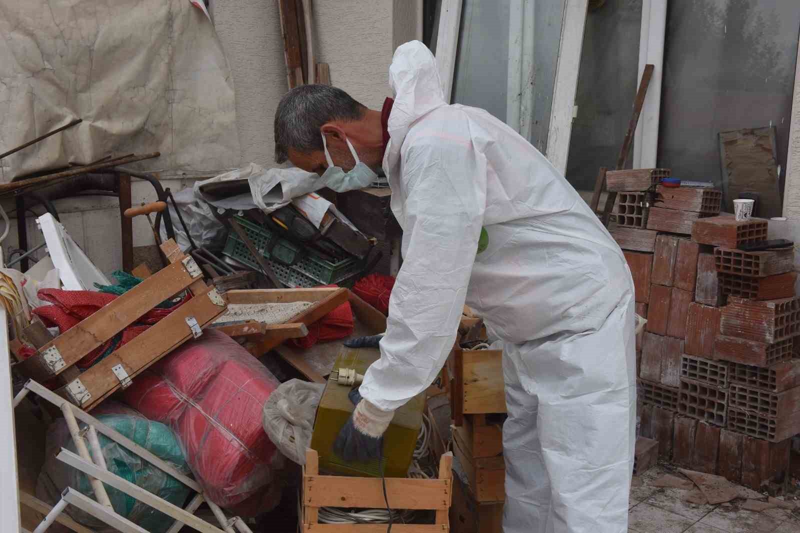 Yıldırım Belediyesi, çöp yığınına dönen evi temizleyerek dezenfekte etti.