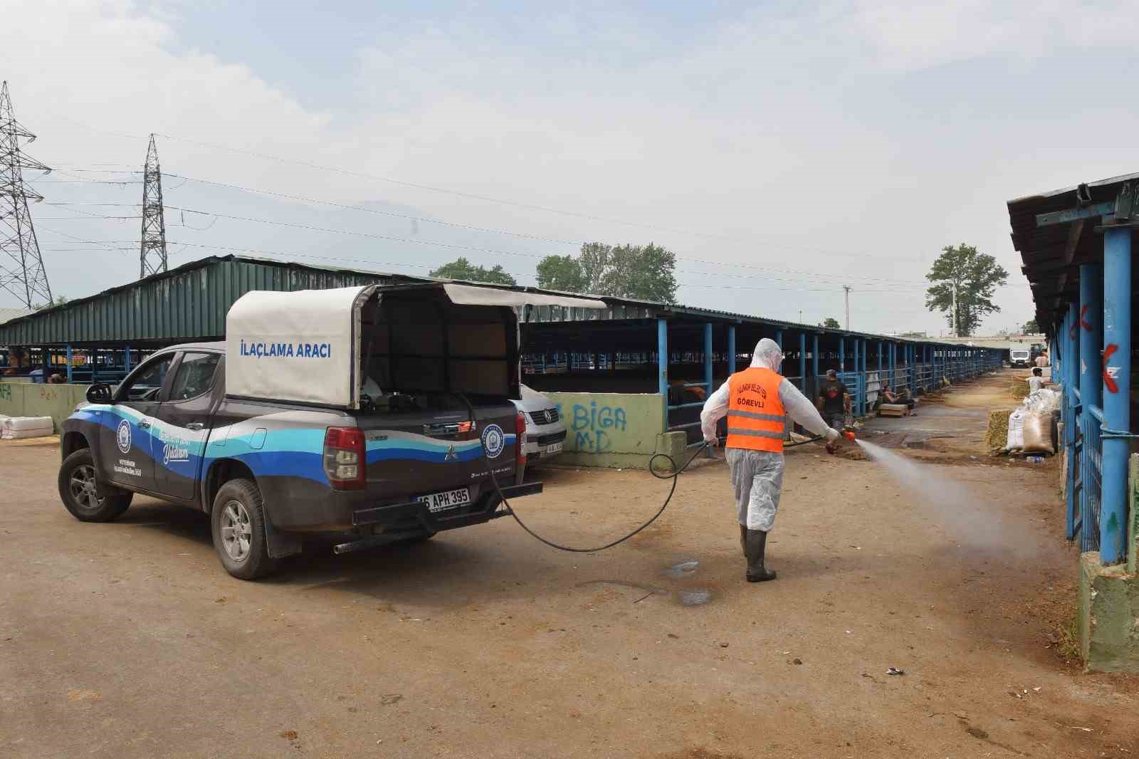 Kurban Bayramı yaklaşırken Yıldırım Belediyesi insan, hayvan ve çevre sağlığının korunması amacıyla, ilçedeki kurban satış alanlarında başlattığı ilaçlama çalışmalarına titizlikle devam ediyor.